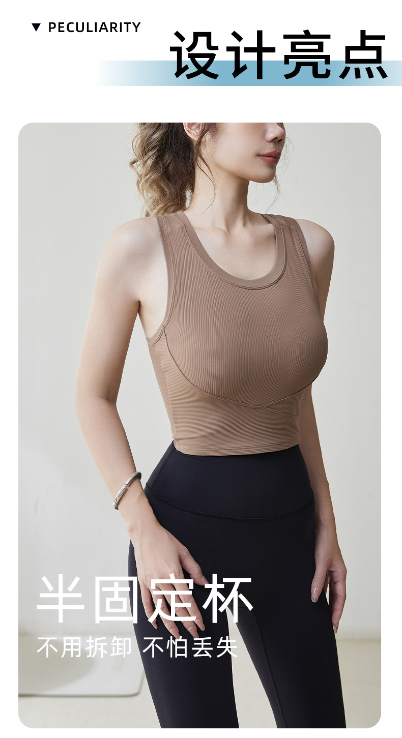 고강도 스포츠 브라, 여성용 고정형 가슴 패드, 충격 방지 및 처짐 방지, 런닝 피트니스 조끼, 요가복 상의