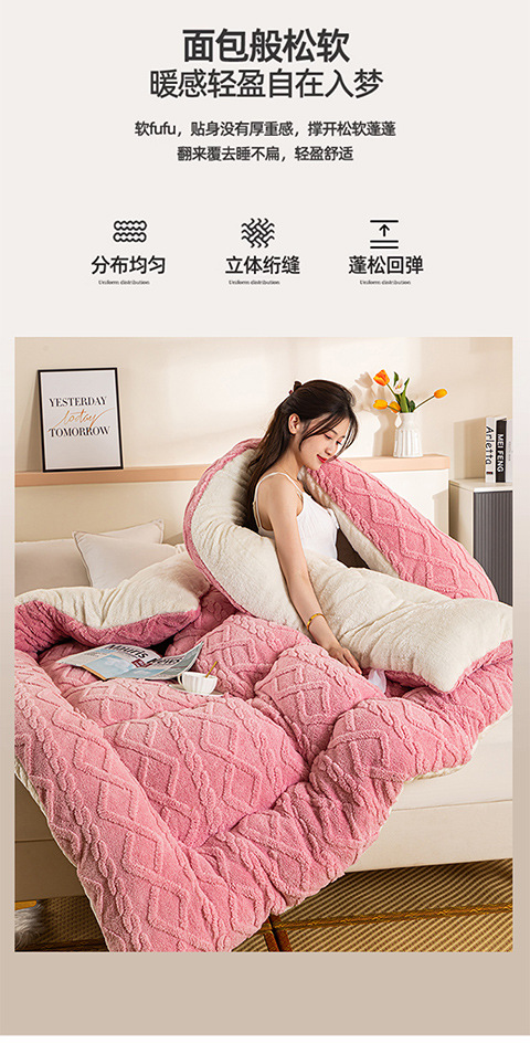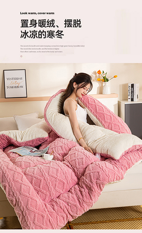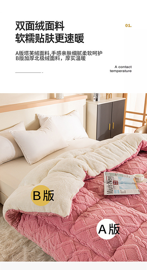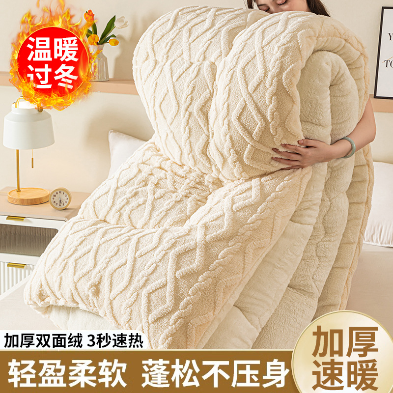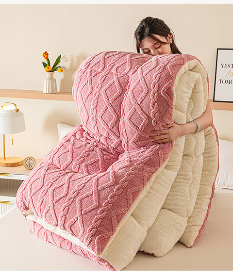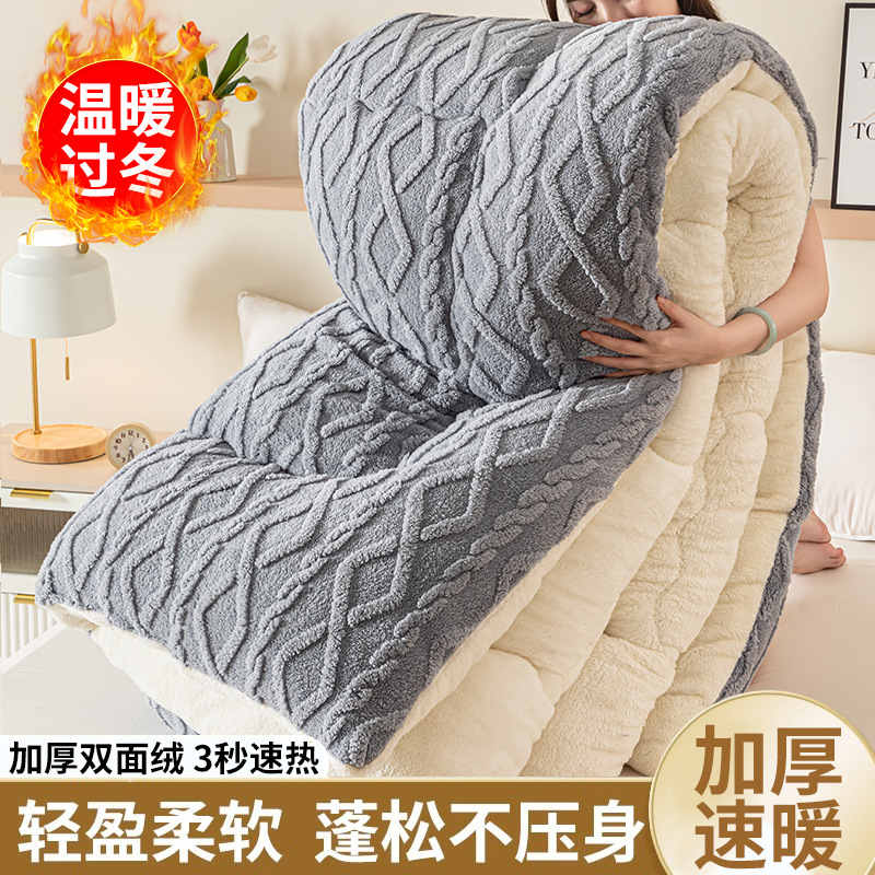Lambswool 퀼트 겨울 퀼트 더블 레이어 두꺼운 따뜻한 싱글 학생 기숙사 가을과 겨울 퀼트 두꺼운 담요 퀼트 코어스토어 가기