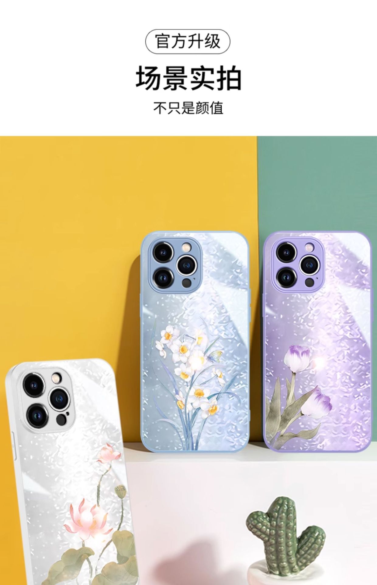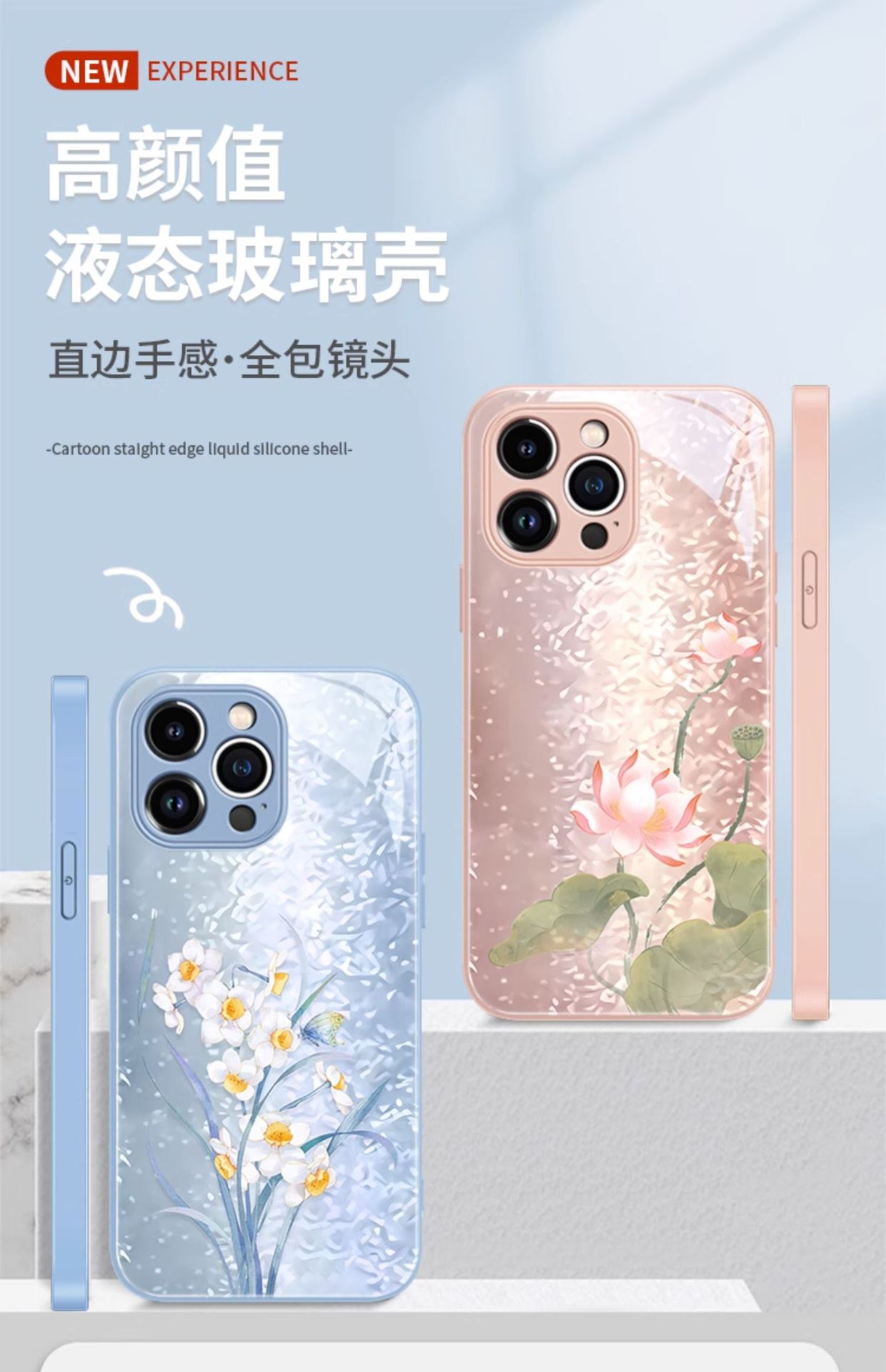 애플 15Promax 휴대 전화 쉘 금속 페인트 유리 14 새로운 XSMAX 렌즈 모두 포함 웨이브 라이트 꽃스토어 가기
