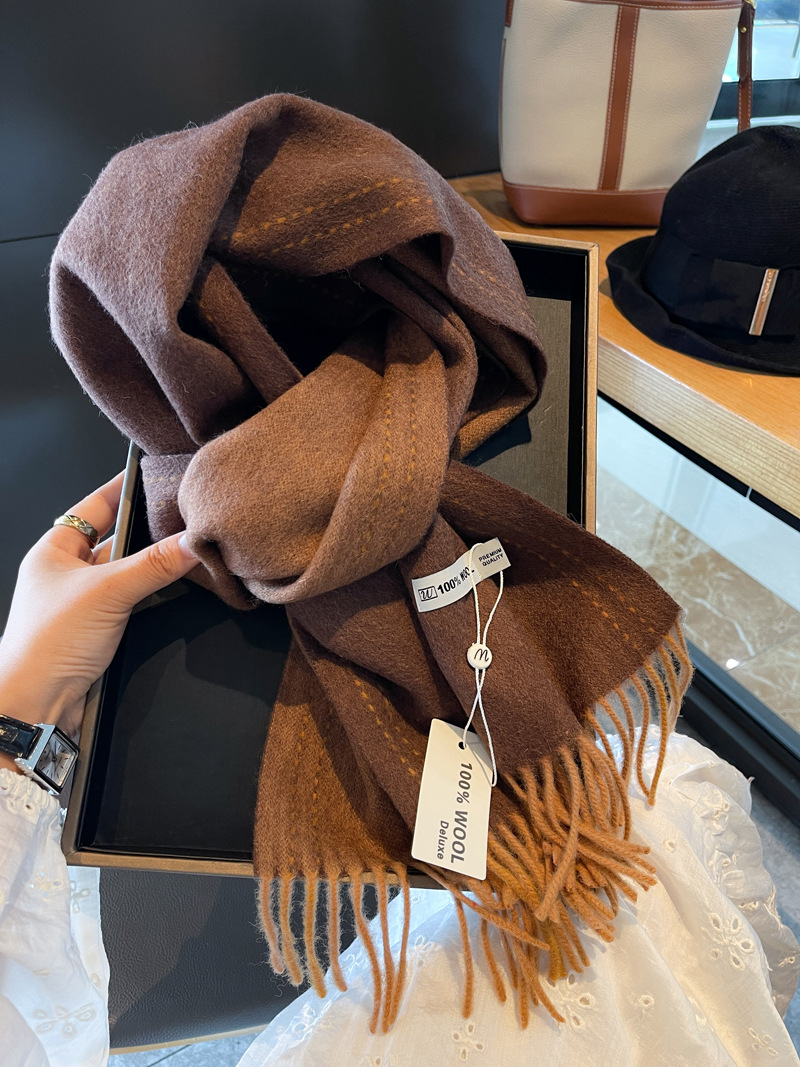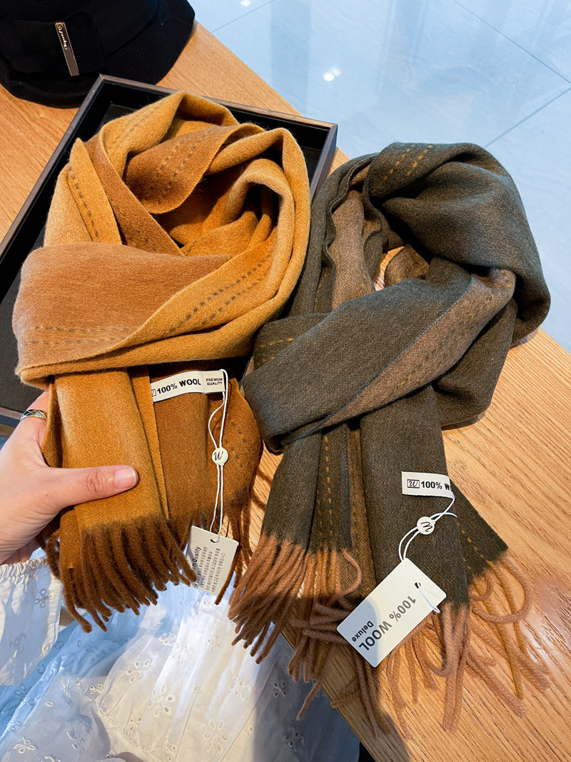 <특징주> 호주 양모 스카프 여자 겨울 100% 양모 양면 2 색 대패… 올매치 커플의 따뜻한 스카프