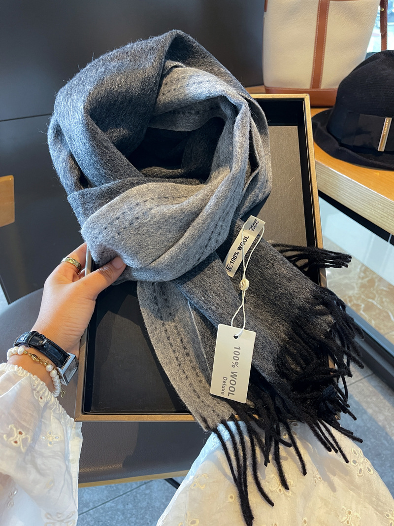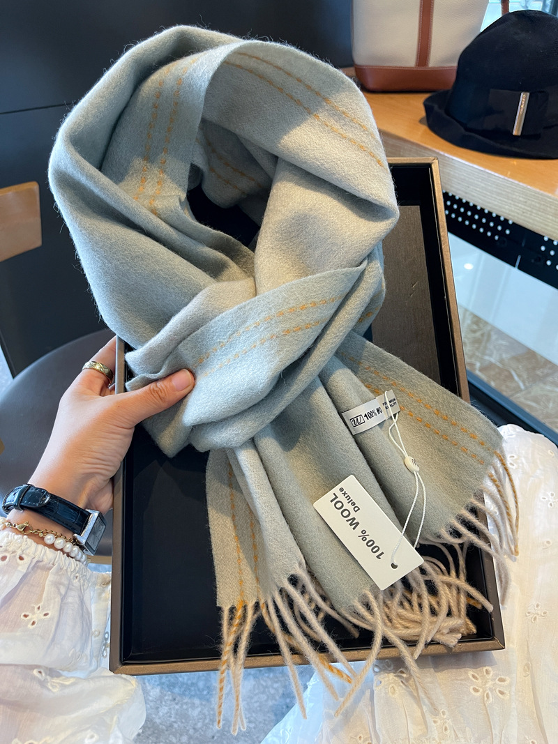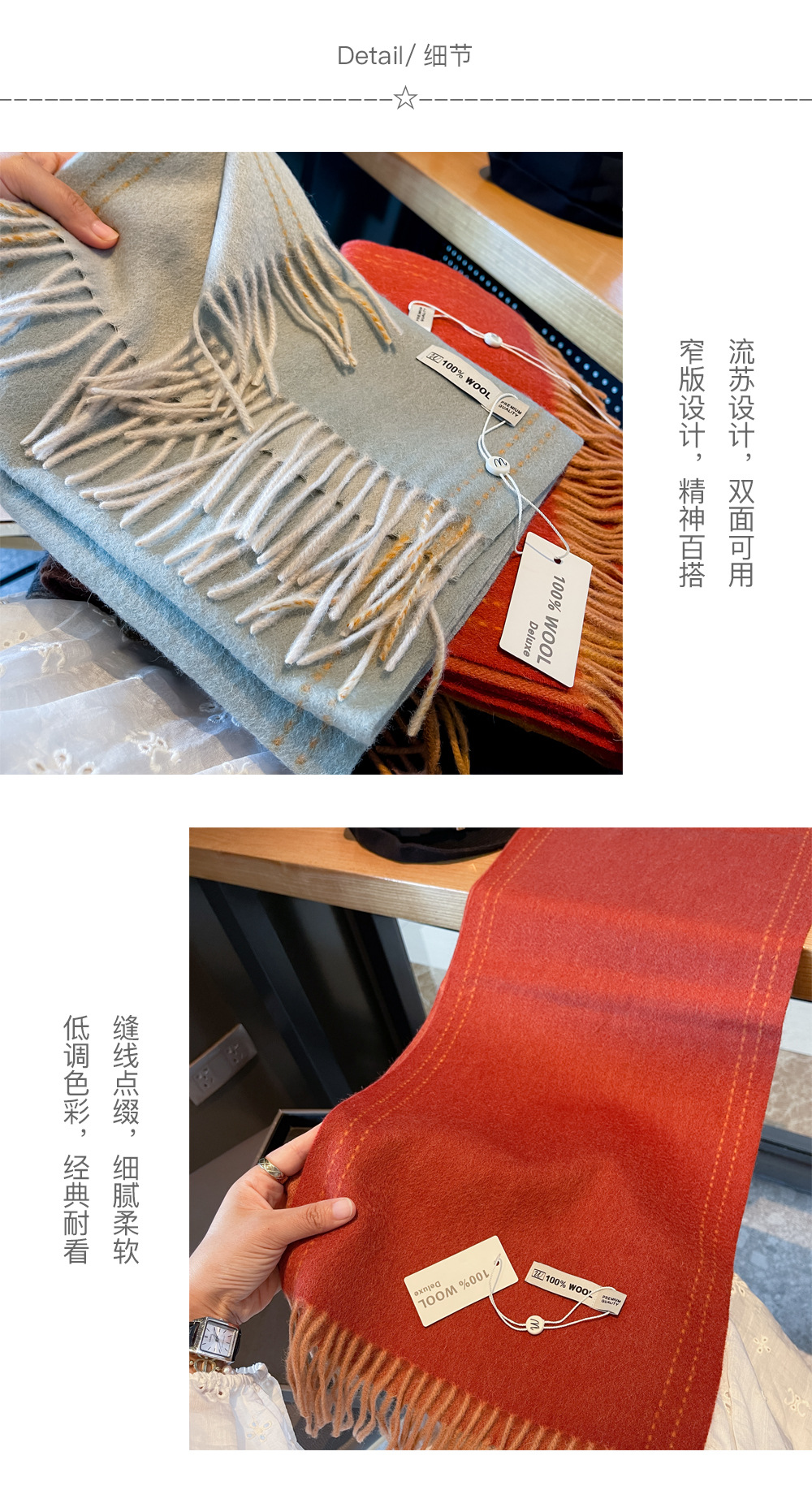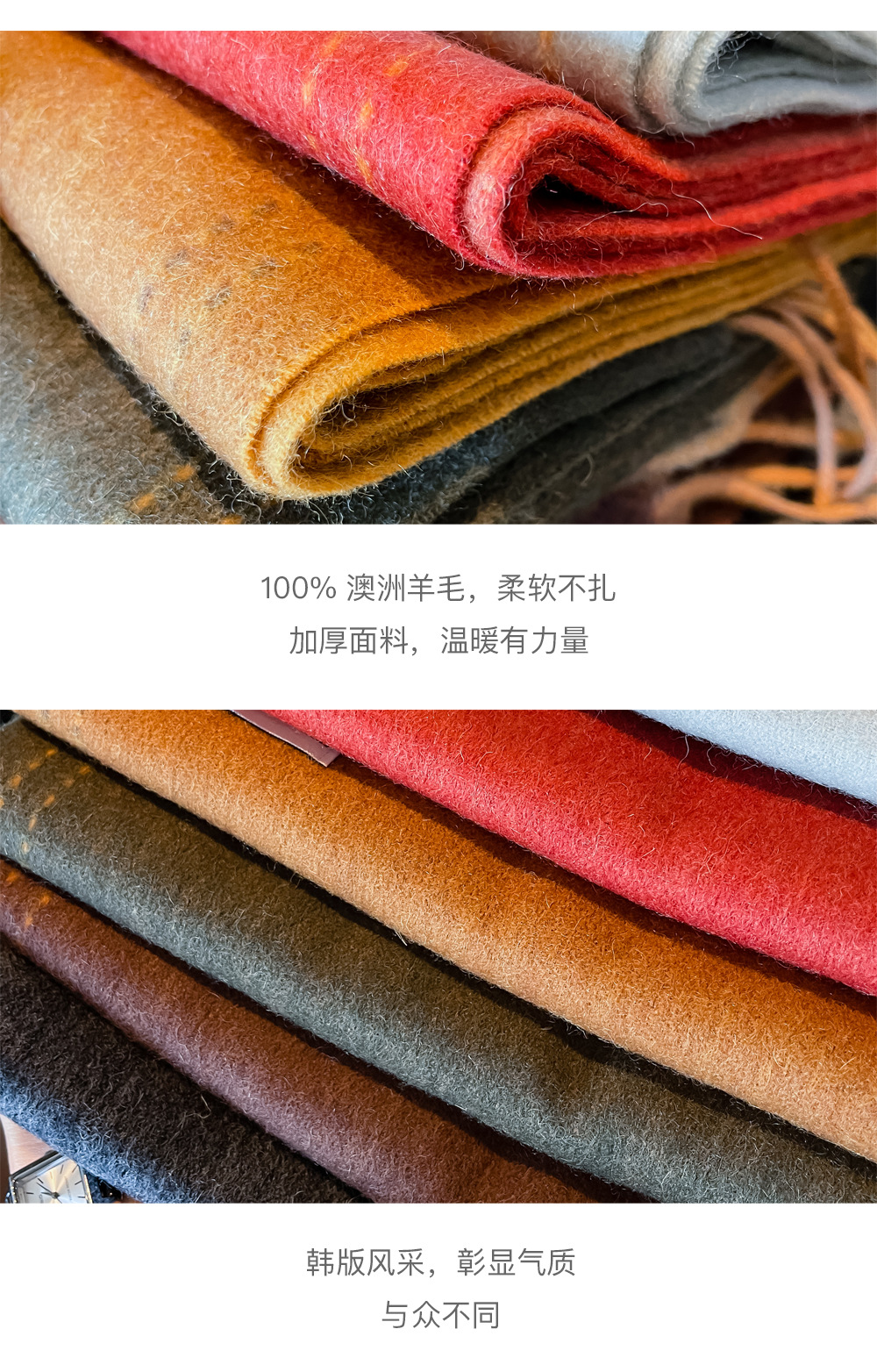 精选澳洲羊毛围巾女冬季100%wool双面双色虚线百搭情侣款保暖围脖