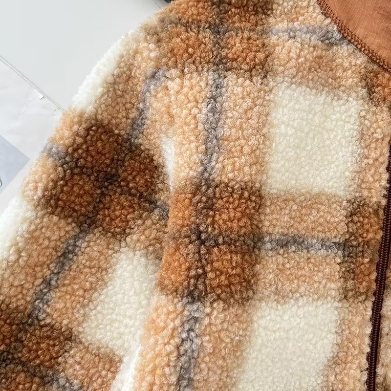 가을과 겨울 아동복 소년과 소녀 방풍 따뜻한 격자 무늬 양털 재킷 칼라 재킷 코트 461149