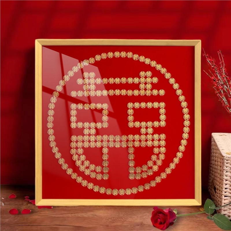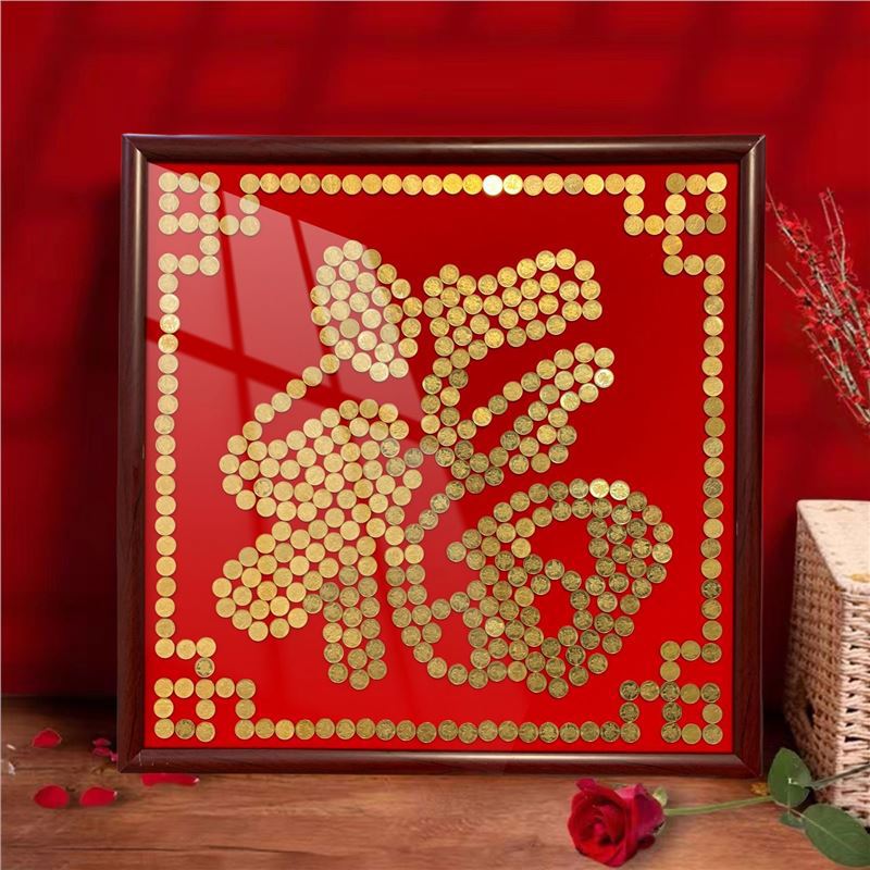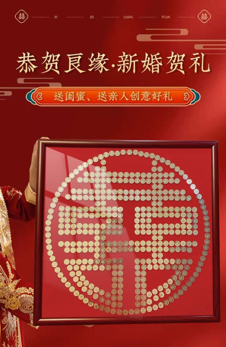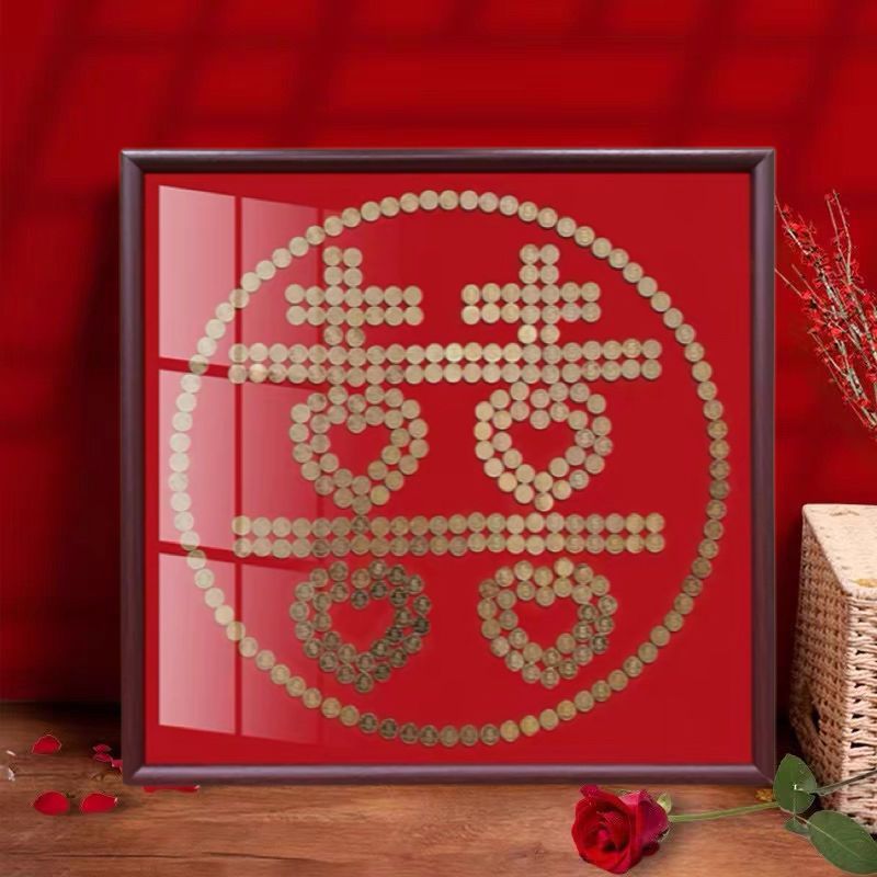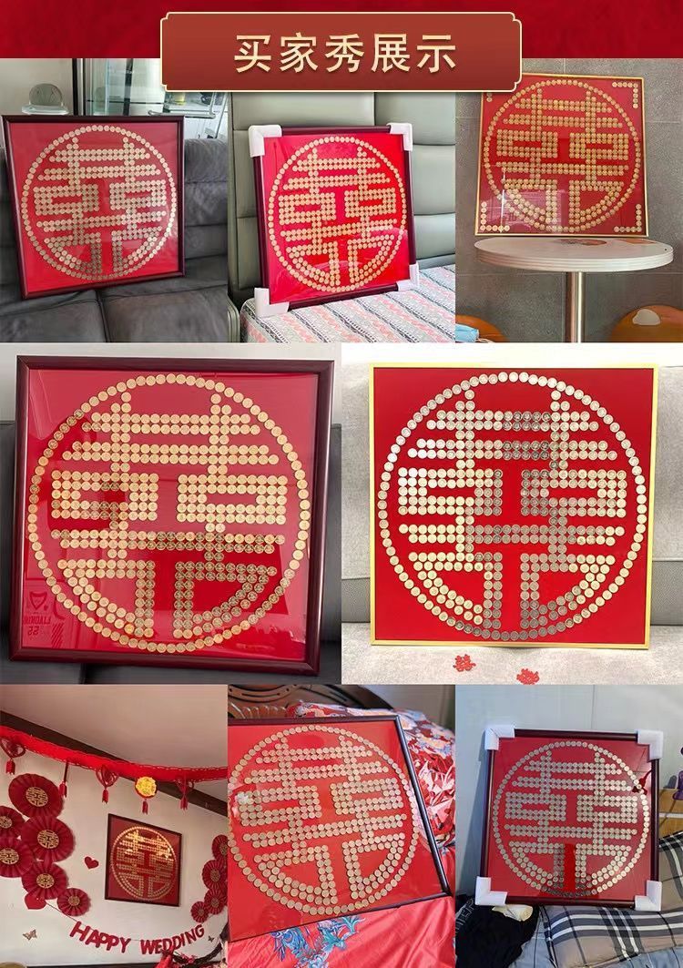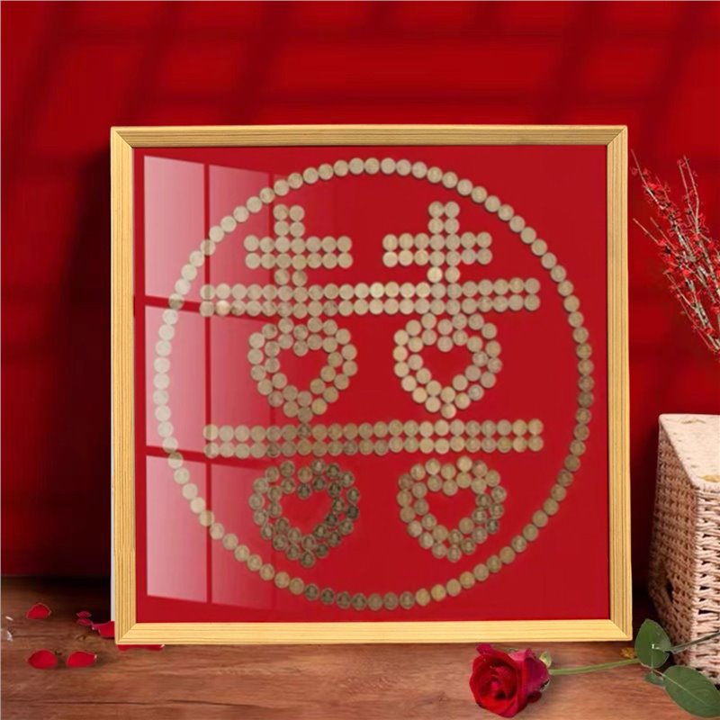 여자 친구 결혼 선물을위한 5 마오 Xi 캐릭터 DIY 수제 선물 50 센트 Xi 캐릭터 동전 사진 프레임 몰려 천 템플릿스토어 가기
