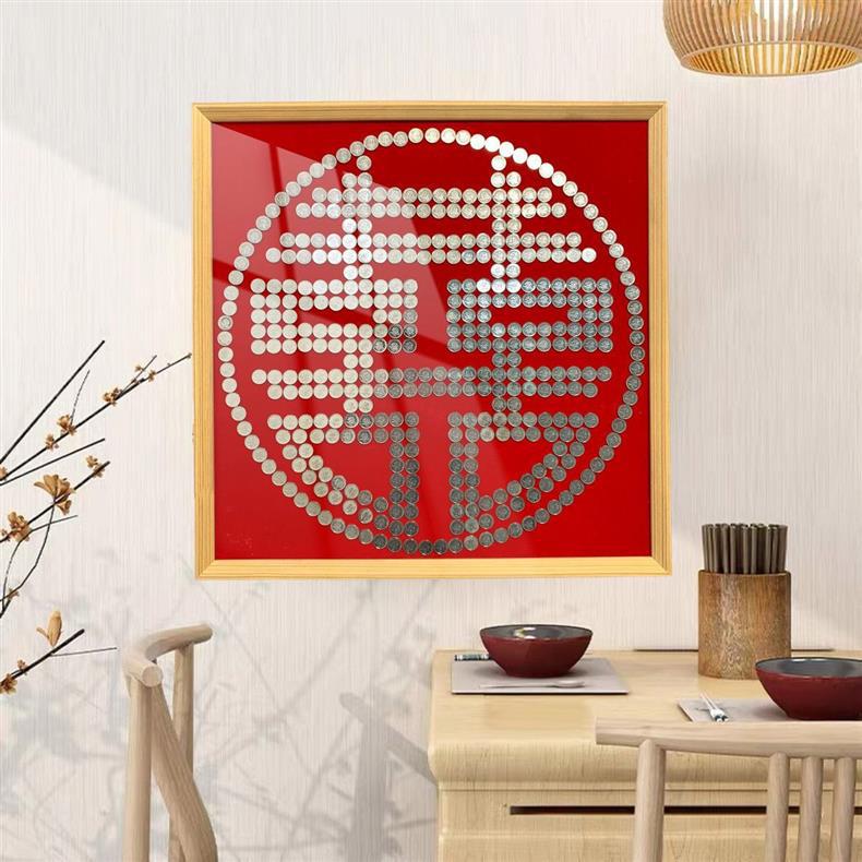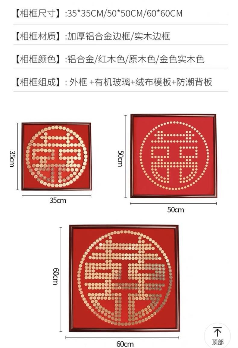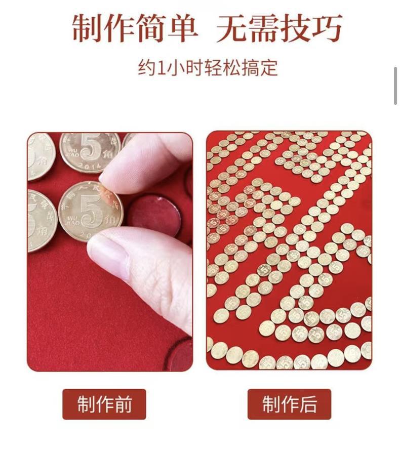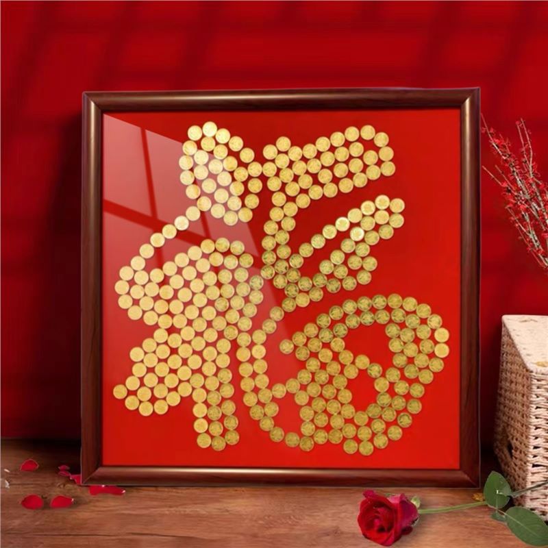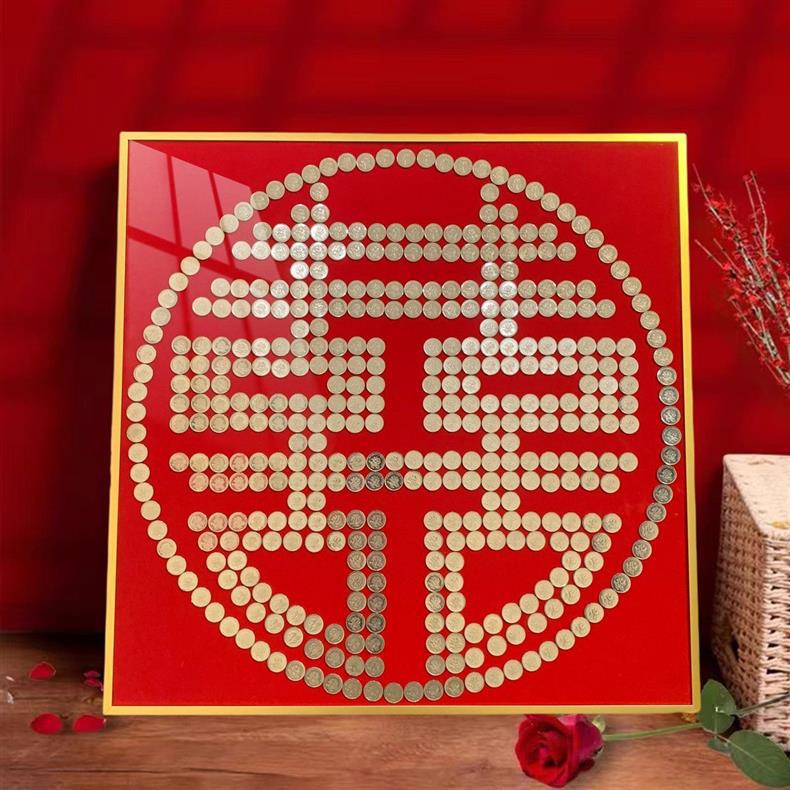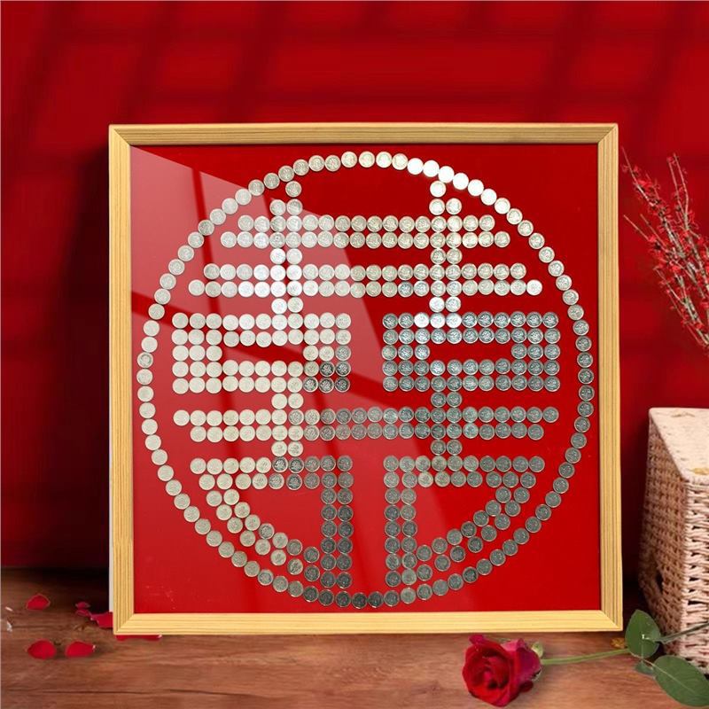 여자 친구 결혼 선물을위한 5 마오 Xi 캐릭터 DIY 수제 선물 50 센트 Xi 캐릭터 동전 사진 프레임 몰려 천 템플릿