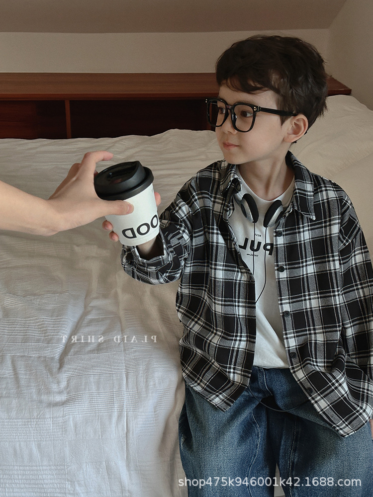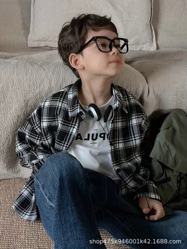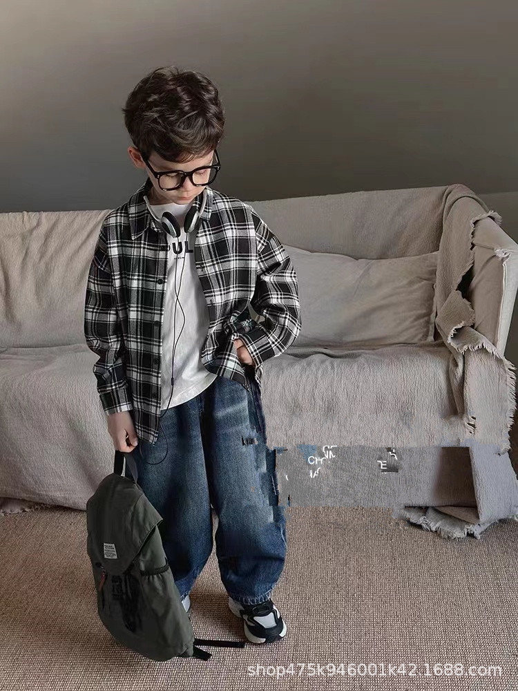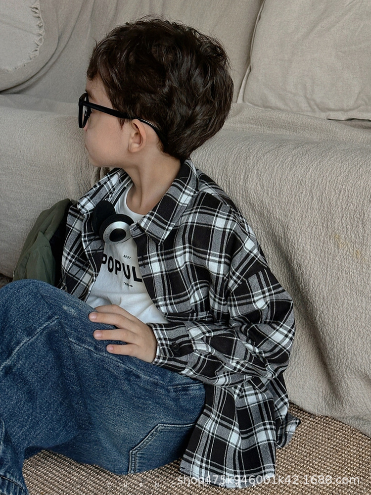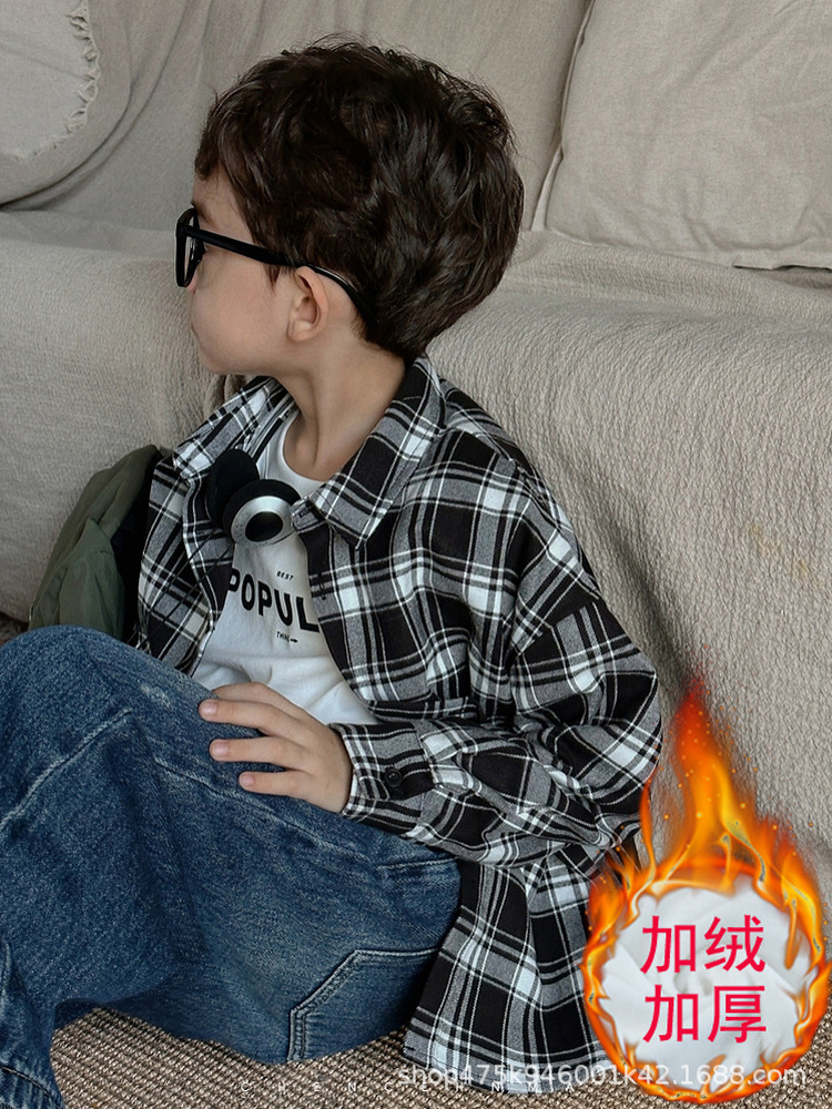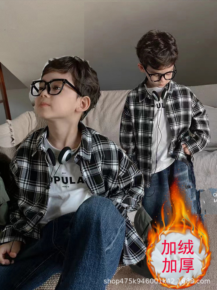 도매 폭발 소년 격자 무늬 셔츠 가을과 겨울 어린이 긴팔 탑 소녀 잘 생긴 플러스 벨벳 따뜻한 코트 셔츠스토어 가기