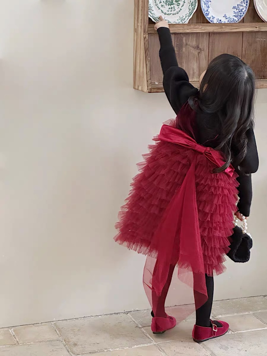 • 빨간 조끼 케이크 스커트 얇은 벨벳