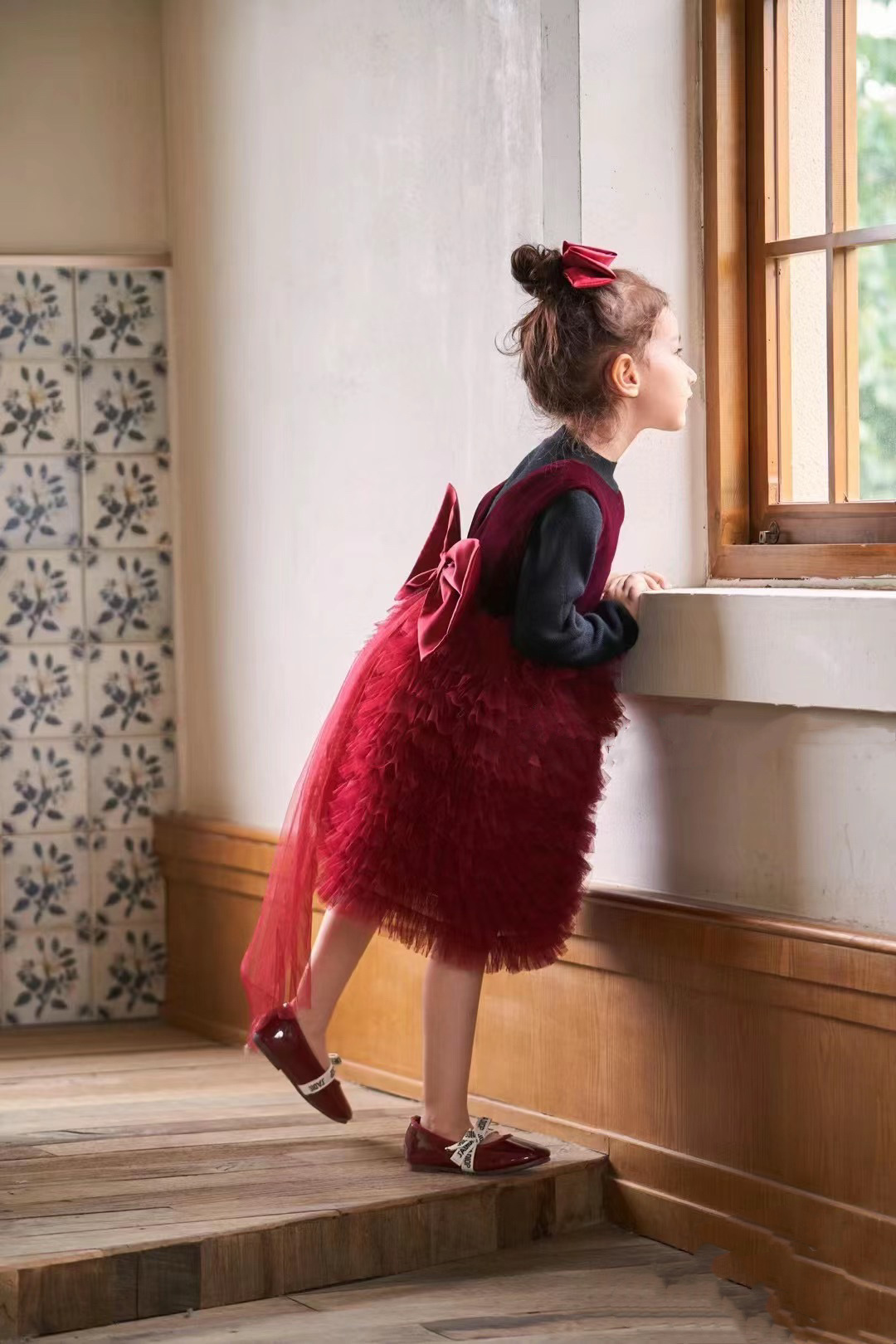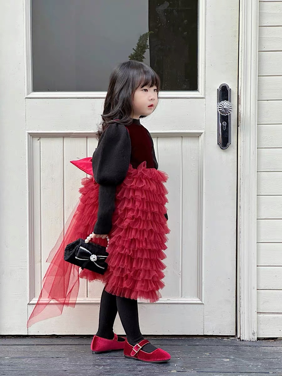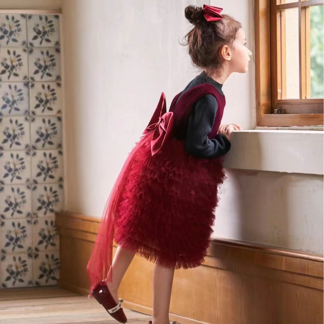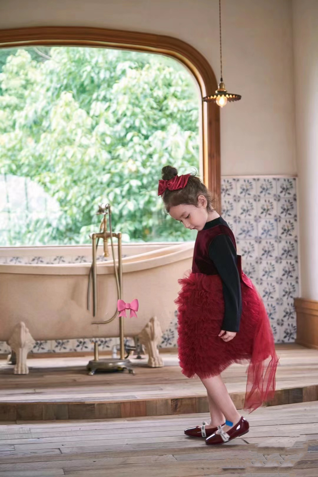 소녀 23 겨울 새 원피스 기모 조끼 치마 메쉬 투투 스커트 붉은 새해 원피스 공주 원피스스토어 가기