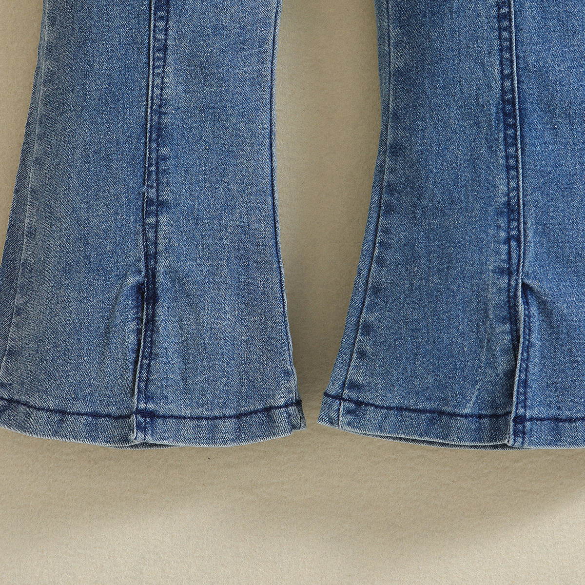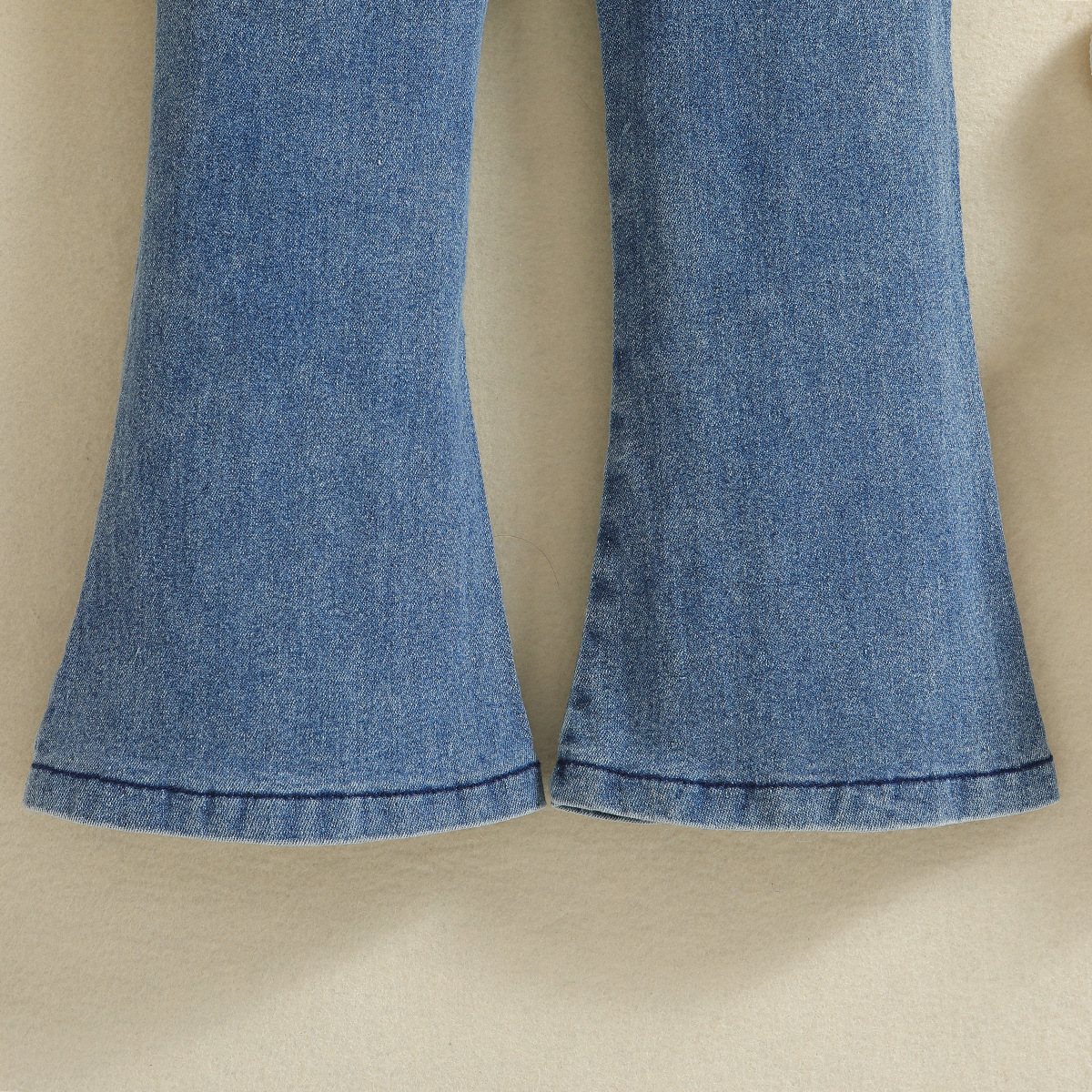 국경 간 어린이 바지 봄 새로운 어린이 바지 소녀 데님 서스펜더 바지 유행 서양식 어린이 플레어 바지