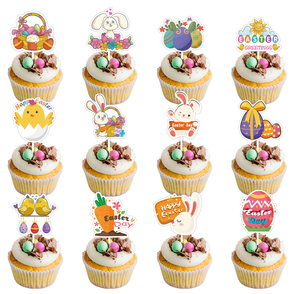 跨境复活节派对蛋糕小插旗欧美Easter聚会装饰蛋糕纸杯插旗批发