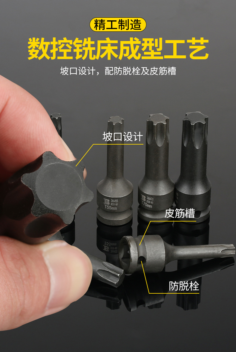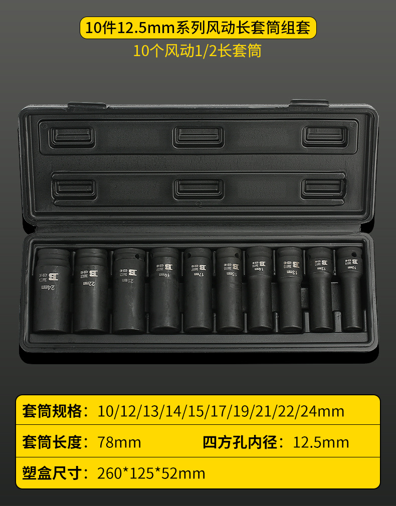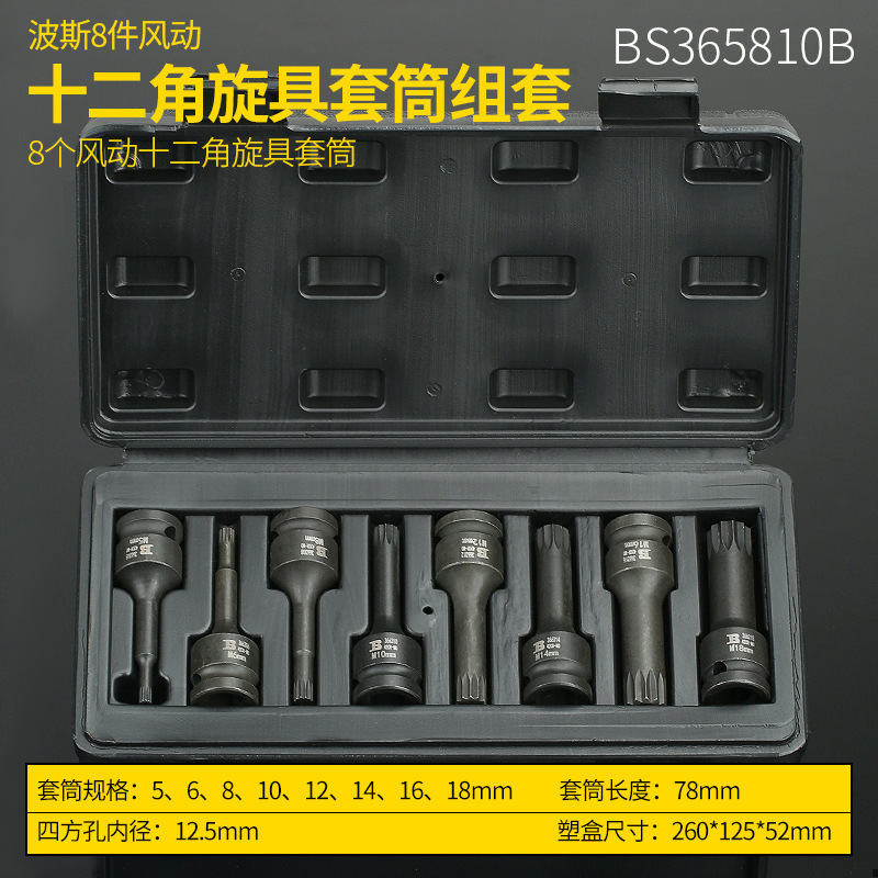 • 8 조각 12.5mm 시리즈 공압 12 각 드라이버 슬리브 세트 BS365810B