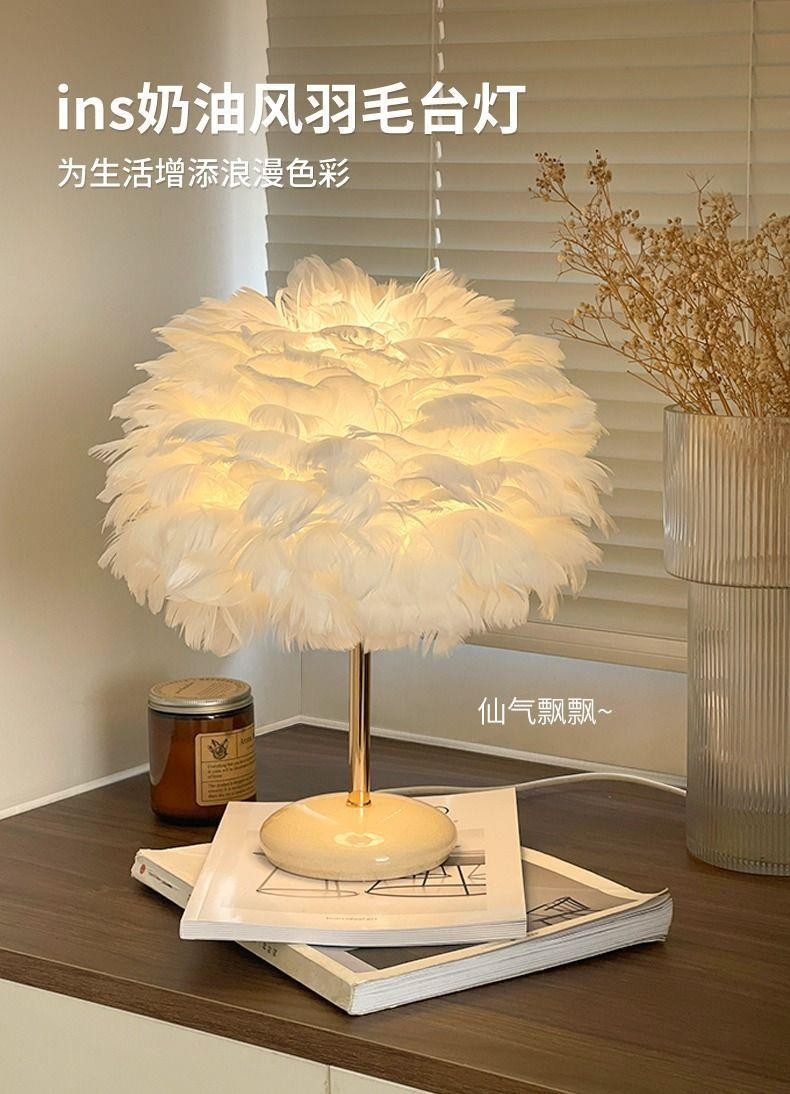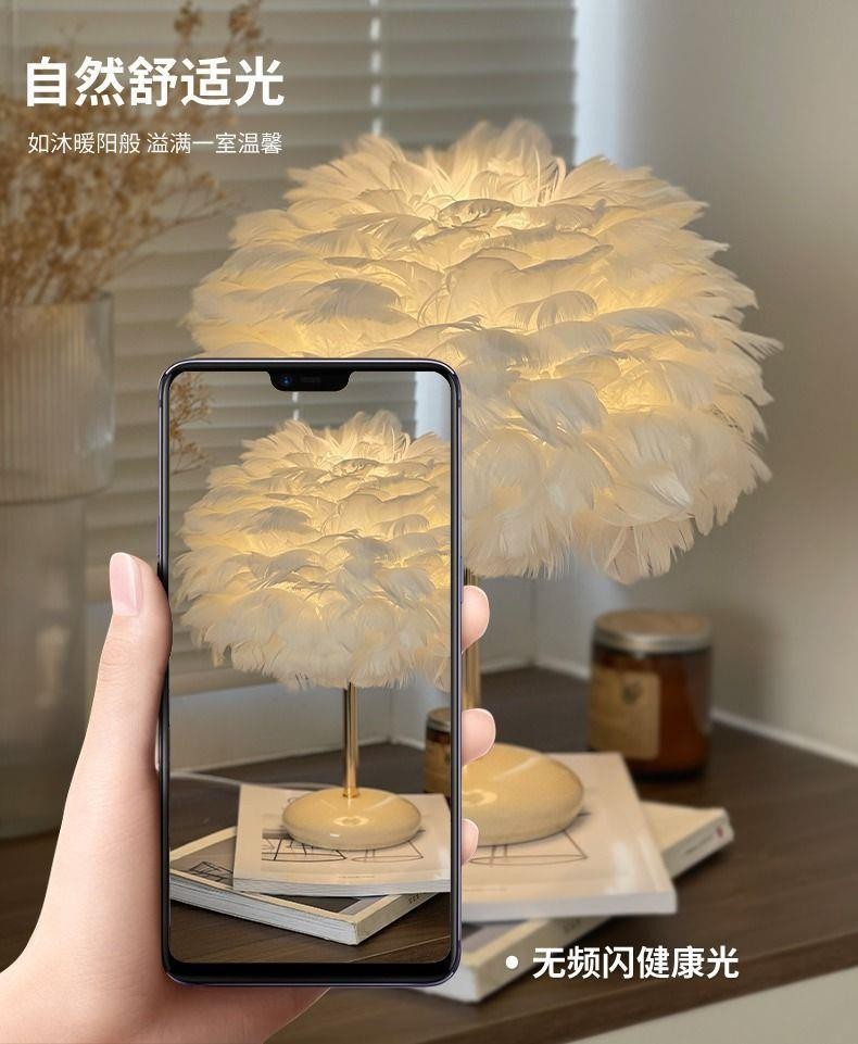 깃털 테이블 램프 침실 소녀 침대 옆 램프 창조적 인 간단한 현대 야간 조명 웨딩 룸 따뜻한 장식 램프