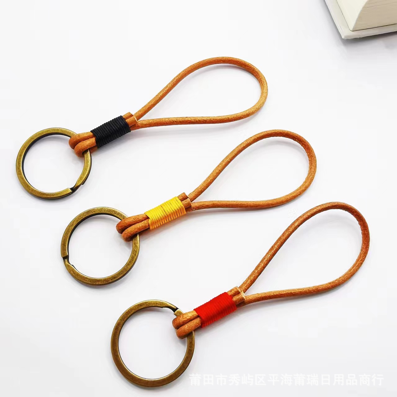 수제 가죽 로프 키 링 커플 간단한 짠 펜던트 빈티지 소 가죽 자동차 키 로프 창조적 인 작은 선물
