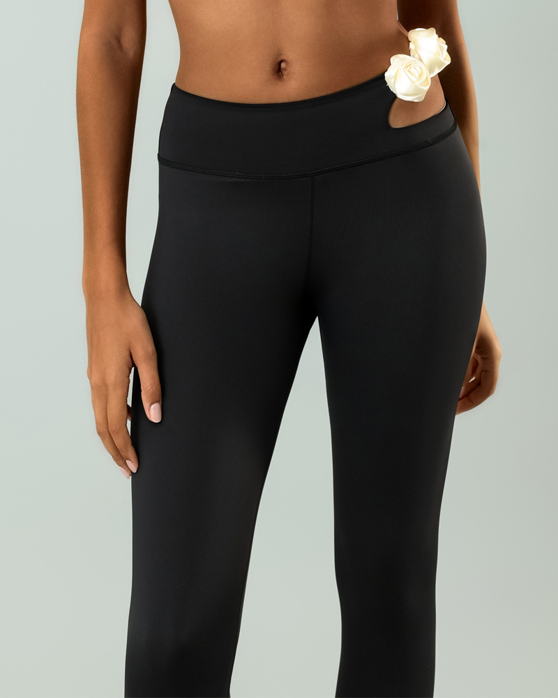 대외 무역 스포츠 피트니스 바지 여성 속이 빈 꽃 높은 탄성 통기성 빠른 건조 미드 하이 허리 필라테스 다리 수리 요가 바지