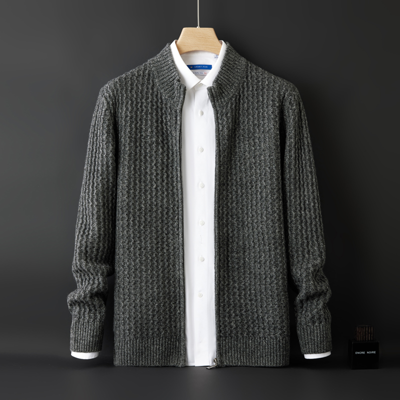 100 순수 양모 카디건 남성용 두꺼운 수직 칼라 긴팔 스웨터 느슨한 비즈니스 캐주얼 풀 울 니트 자켓