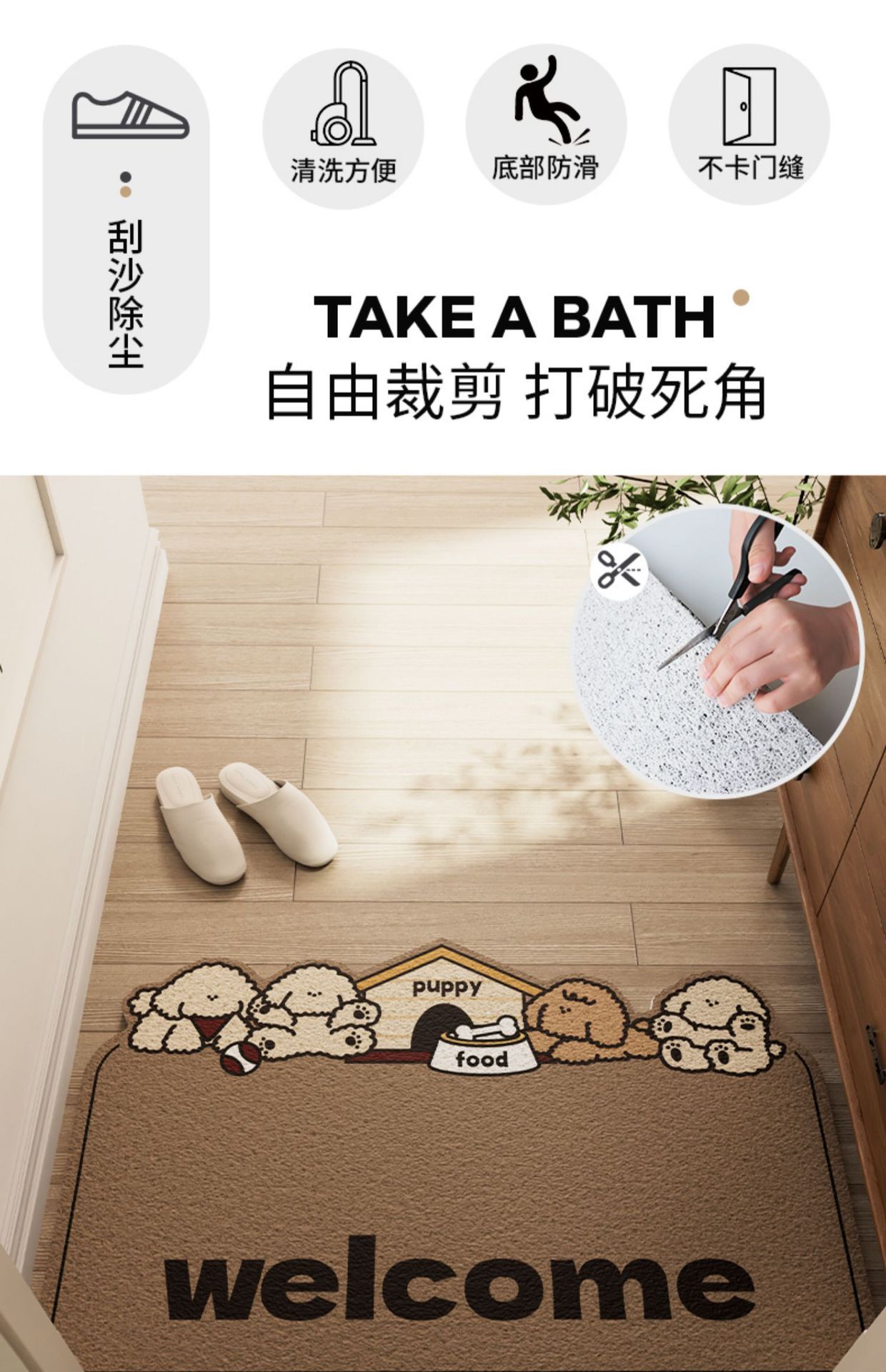 입구 문 매트 가정용 먼지 방지 내마모성 입구 문 매트 귀여운 만화 스타일 불규칙한 실크 루프 매트스토어 가기