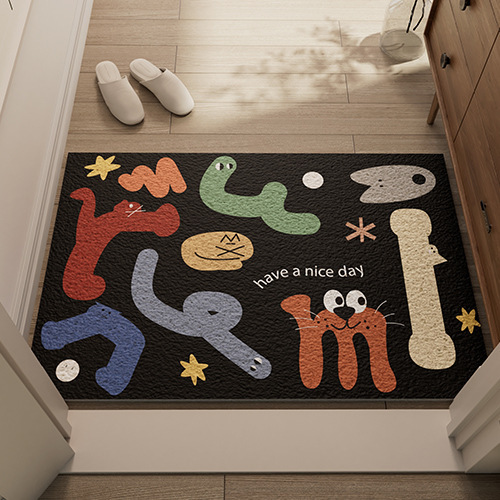 입구 문 매트 가정용 먼지 방지 내마모성 입구 문 매트 귀여운 만화 스타일 불규칙한 실크 루프 매트