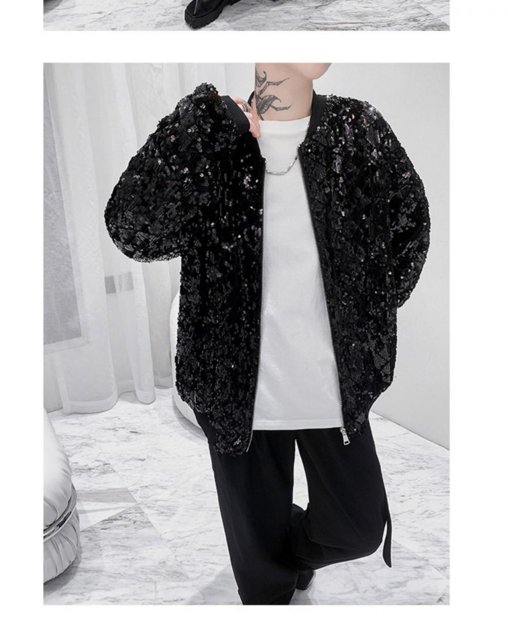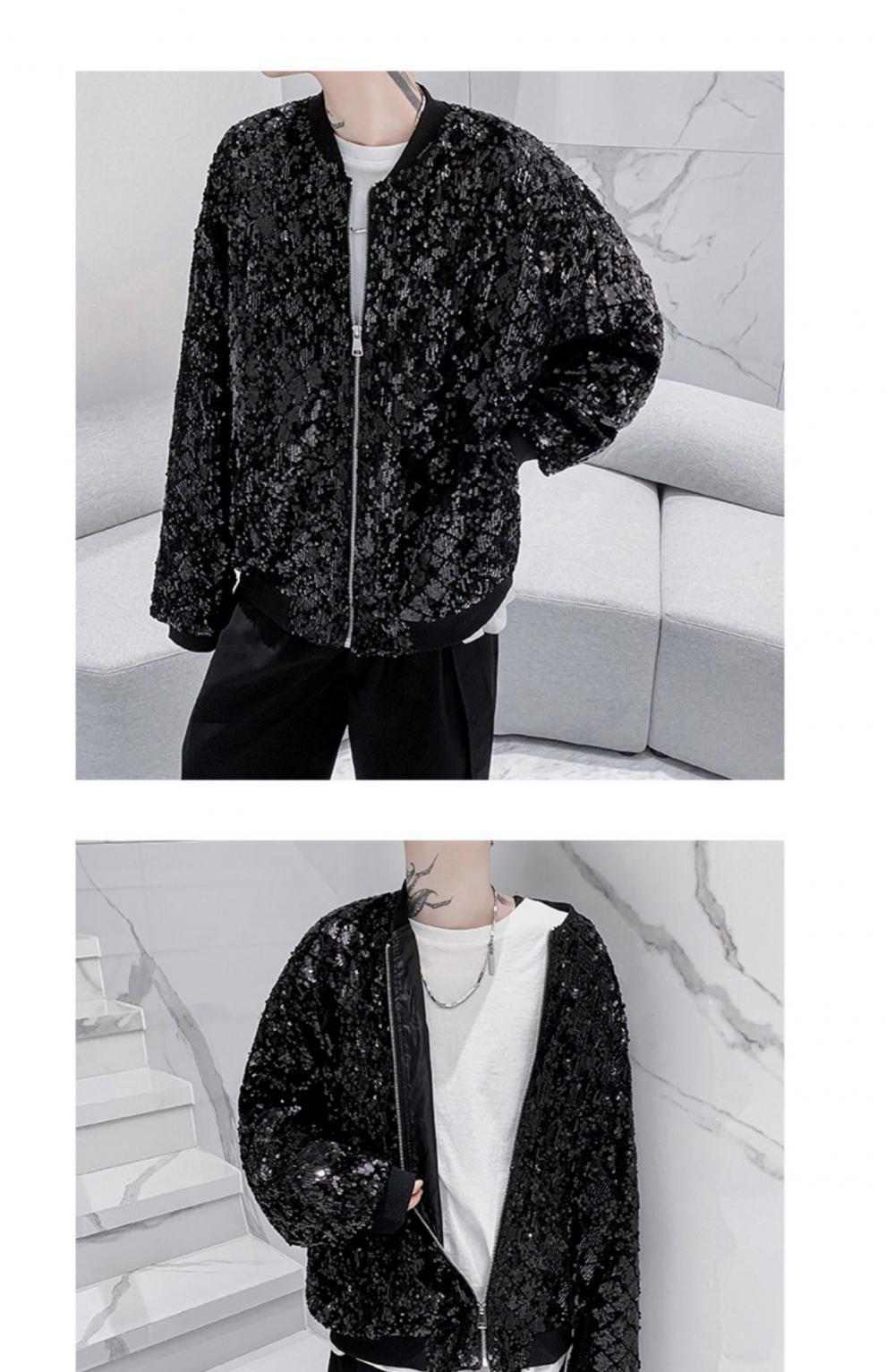 남자 패션 스팽글 캐주얼 야구 유니폼 무대 공연 유니폼 스탠드 칼라 플러스 사이즈 힙합 스탠드 칼라 재킷 유니폼 도매스토어 가기