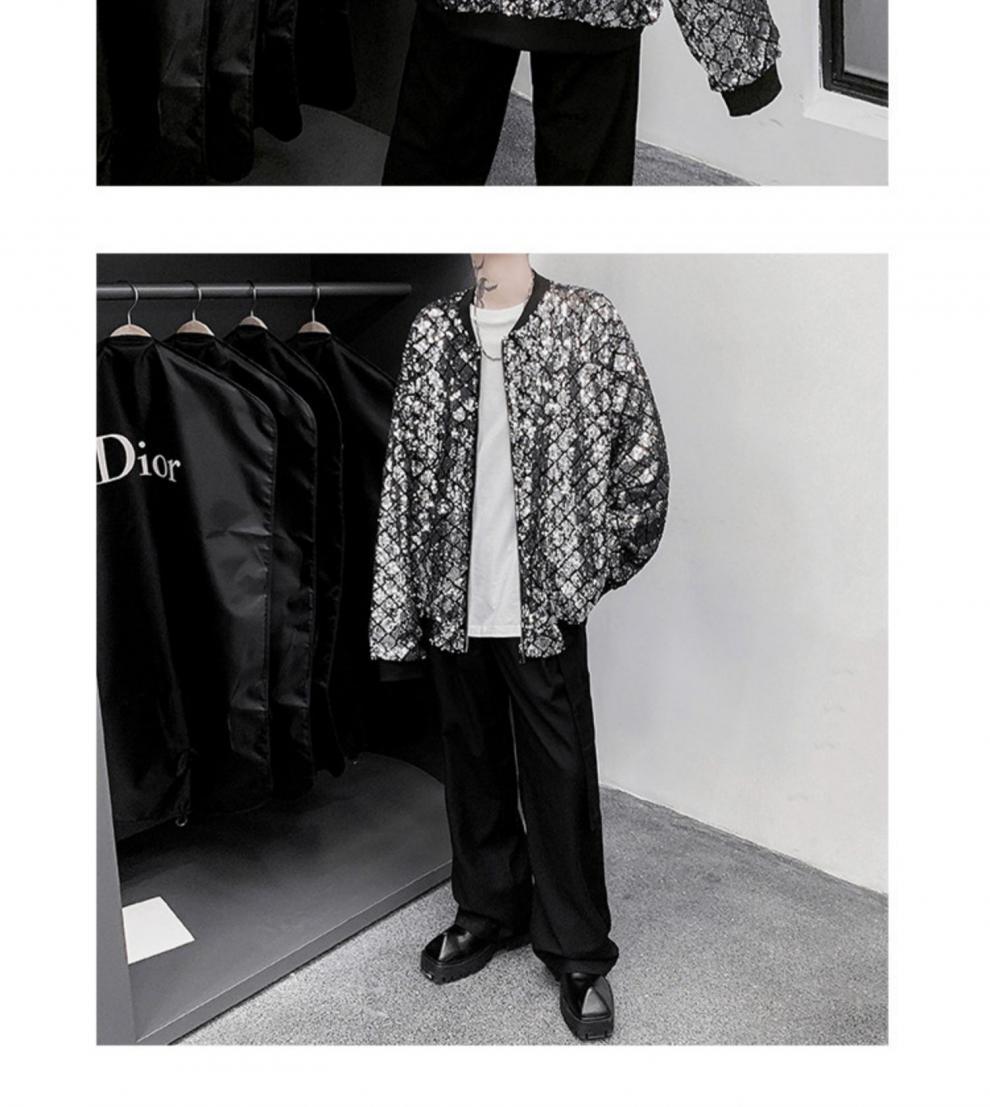 남자 패션 스팽글 캐주얼 야구 유니폼 무대 공연 유니폼 스탠드 칼라 플러스 사이즈 힙합 스탠드 칼라 재킷 유니폼 도매