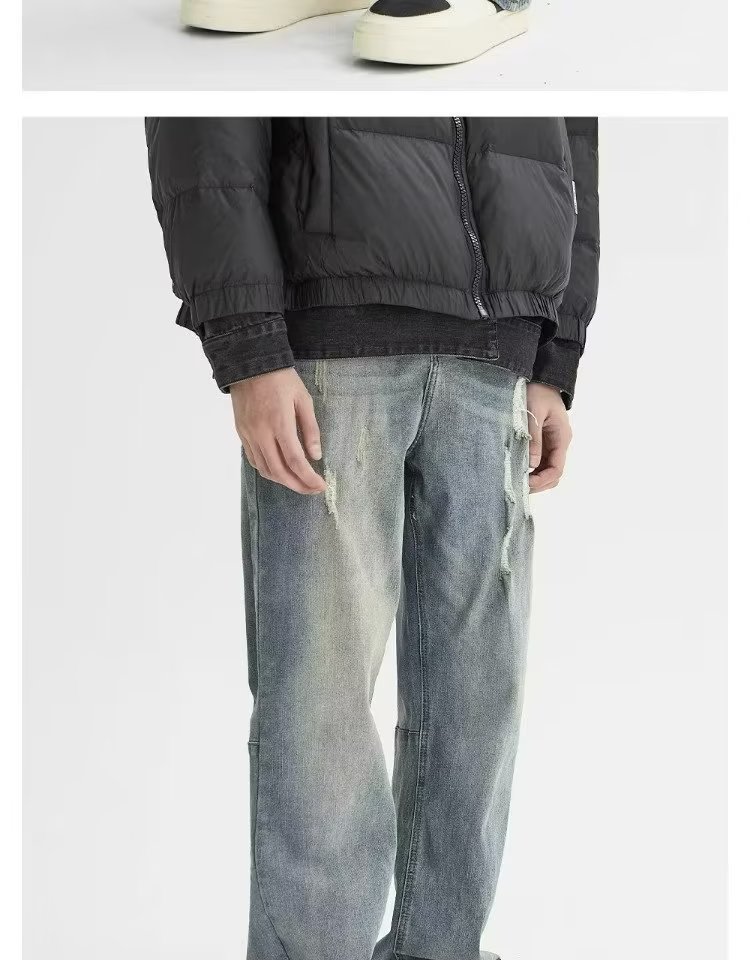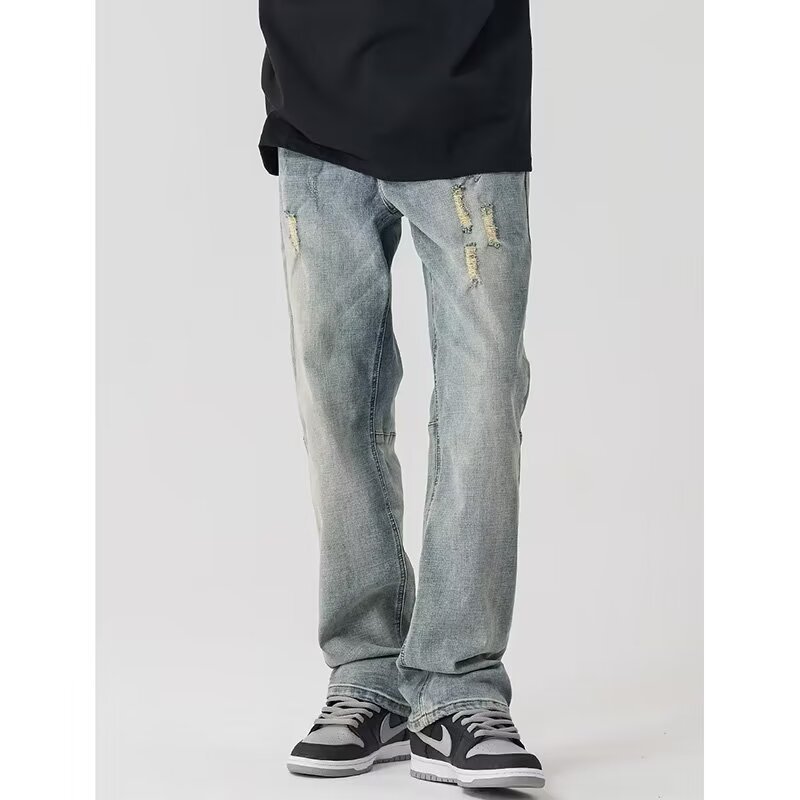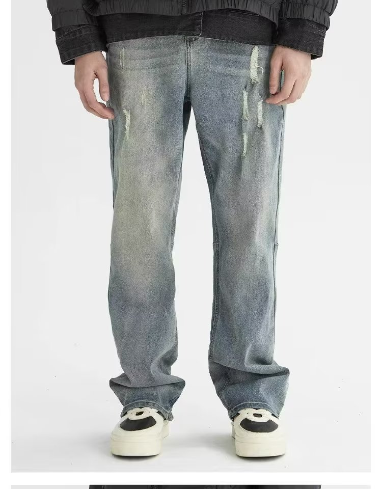 미국의 하이 스트리트 패션 브랜드 스티칭 청바지 남성용 느슨한 스트레이트 바지 복고풍 고민 남성 바지 패션스토어 가기