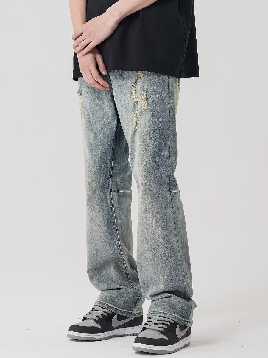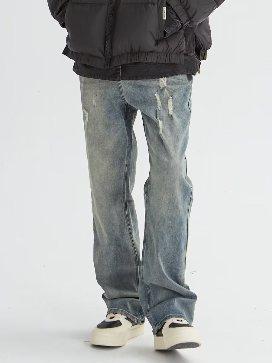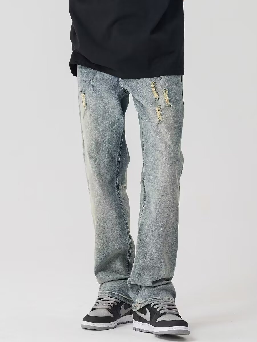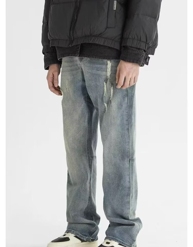미국의 하이 스트리트 패션 브랜드 스티칭 청바지 남성용 느슨한 스트레이트 바지 복고풍 고민 남성 바지 패션