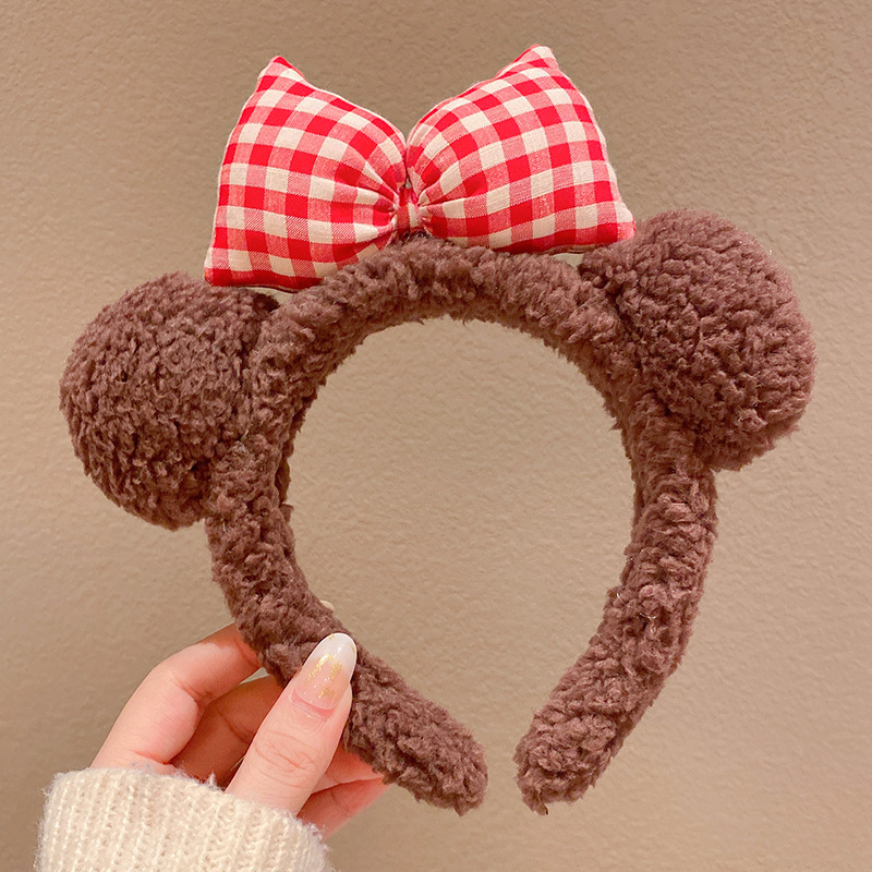 Bowknot 곰 봉제 머리띠 여성 머리 누르는 얼굴 세척 머리띠 야외 다용도 2023 새로운 머리 묶음 머리 장식