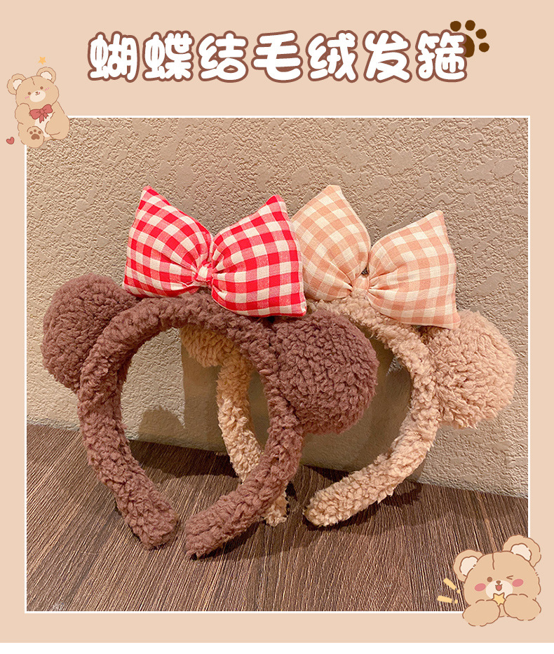 Bowknot 곰 봉제 머리띠 여성 머리 누르는 얼굴 세척 머리띠 야외 다용도 2023 새로운 머리 묶음 머리 장식스토어 가기