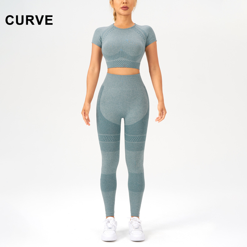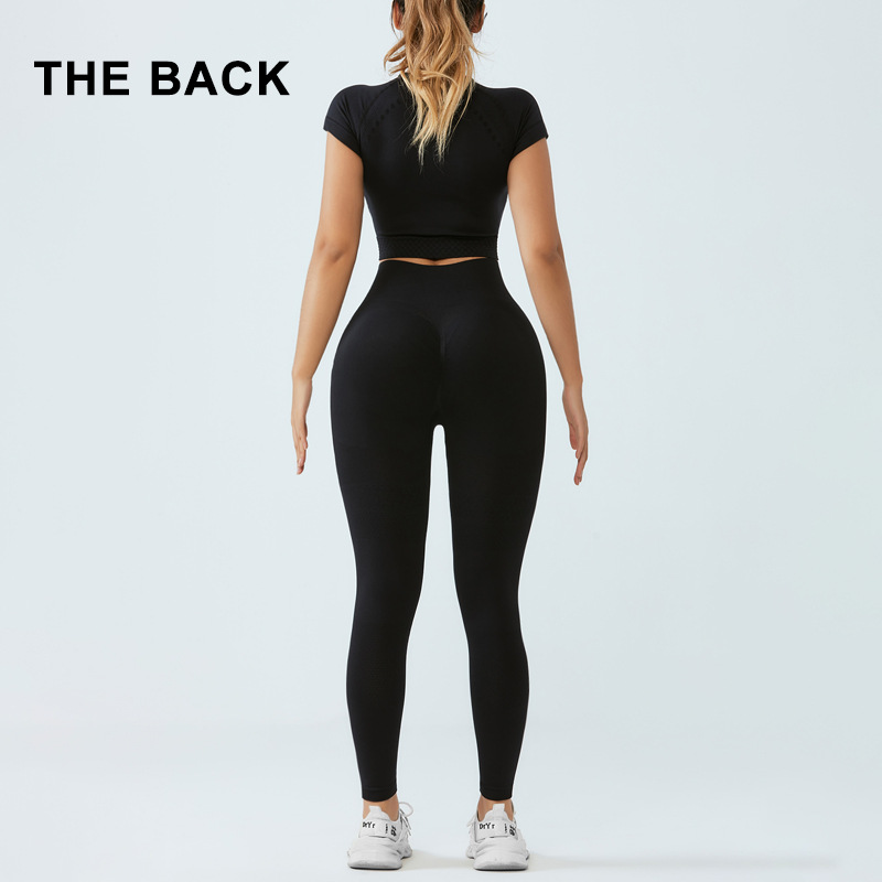 원활한 니트 요가 세트 여성의 가을과 겨울 피트니스 탑 스포츠 필라테 세트 힙합 요가 바지