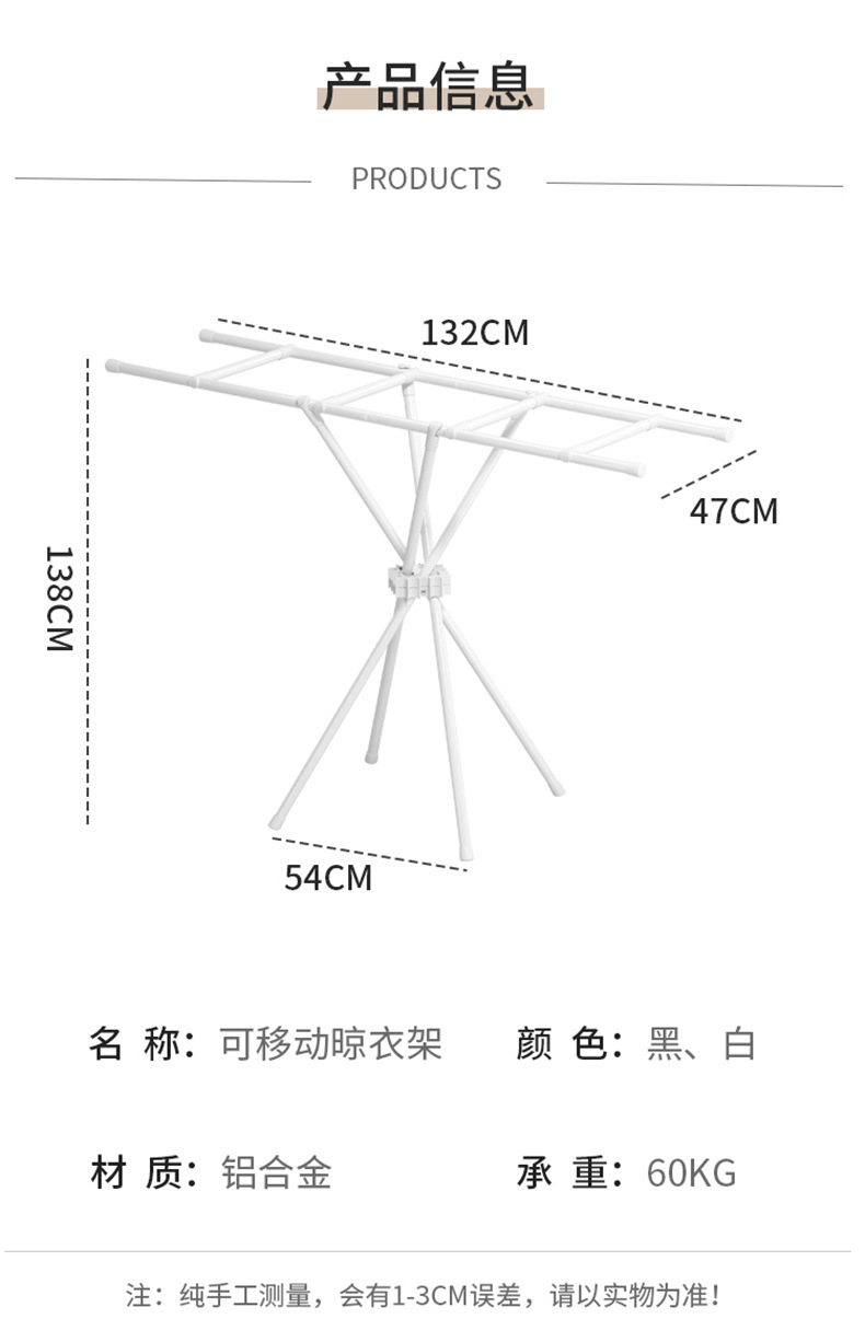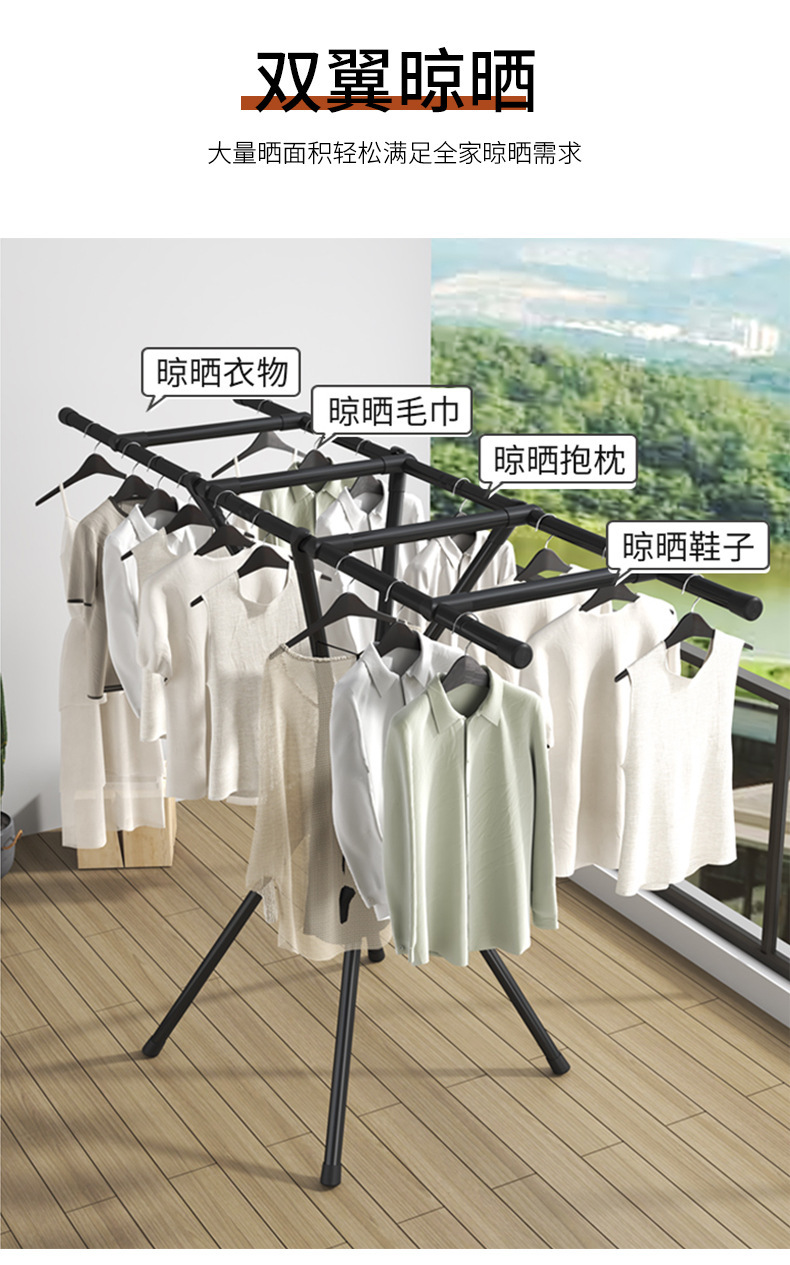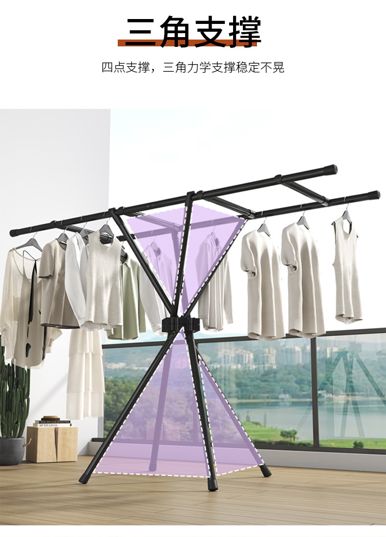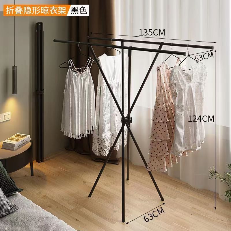 접이식 옷 랙 바닥 실내 가구 발코니 옷 막대 침실 걸이 휴대용 보이지 않는 옷 랙