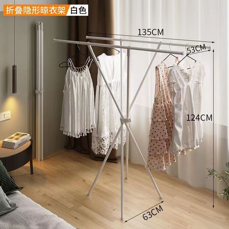 접이식 옷 랙 바닥 실내 가구 발코니 옷 막대 침실 걸이 휴대용 보이지 않는 옷 랙스토어 가기