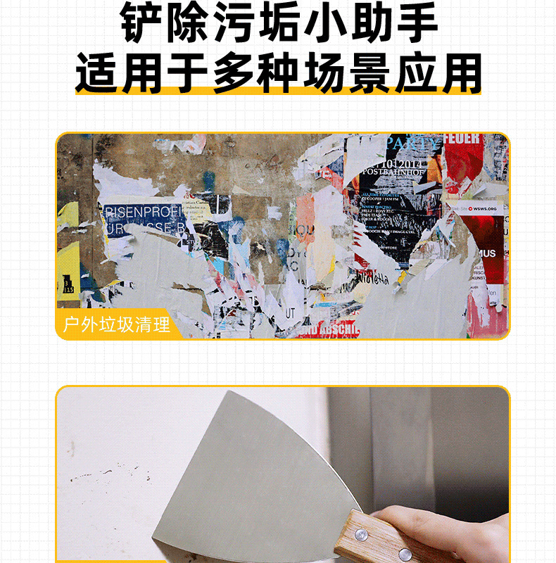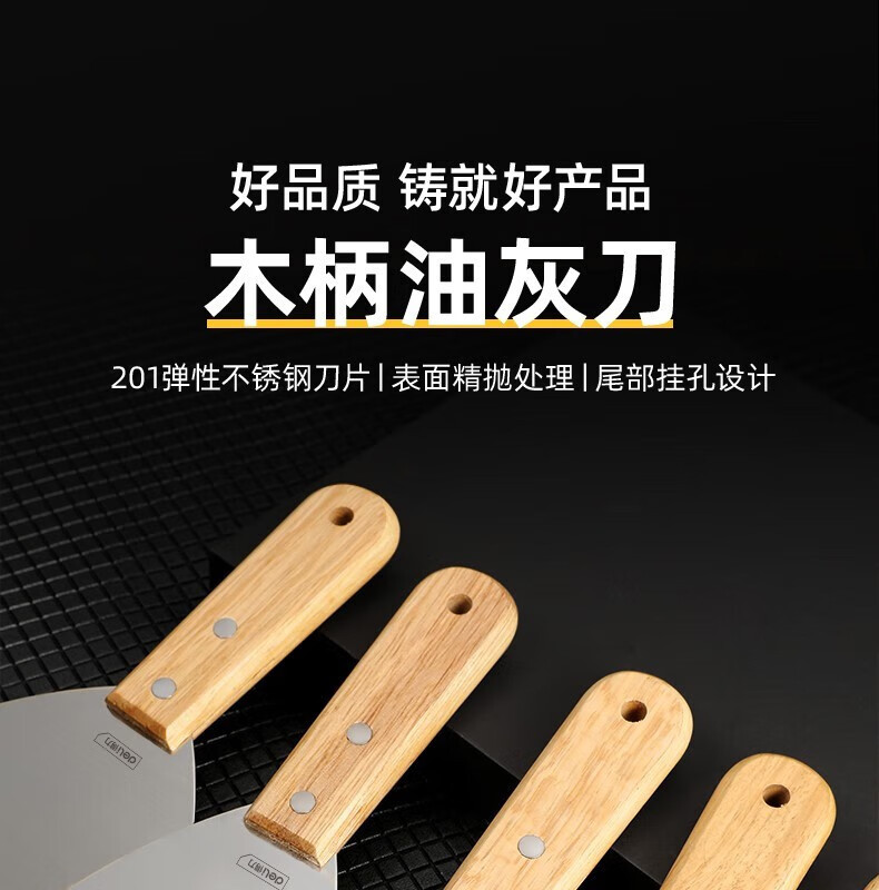 델리 (델리) 스테인레스 스틸 나무 손잡이 퍼티 나이프 삽 퍼티 나이프 삽 회색 나이프 삽 회색 나이프 날카로운 청소 삽스토어 가기