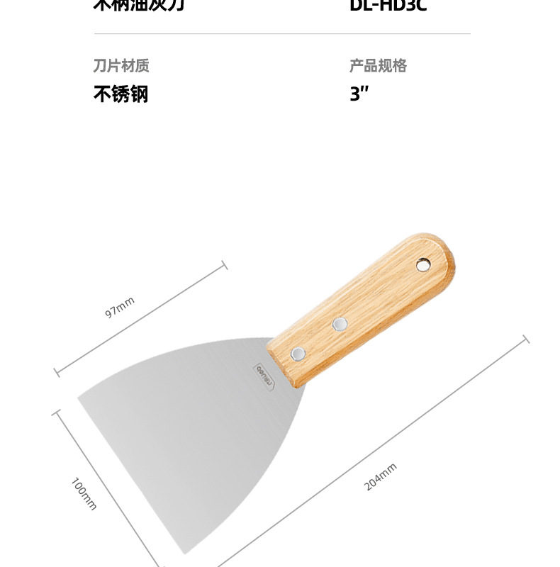 • 3 인치 스테인레스 스틸 나무 손잡이 퍼티 나이프 DL-HD3C