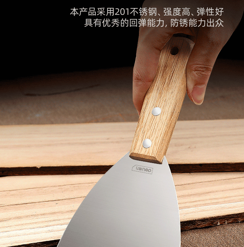 델리 (델리) 스테인레스 스틸 나무 손잡이 퍼티 나이프 삽 퍼티 나이프 삽 회색 나이프 삽 회색 나이프 날카로운 청소 삽