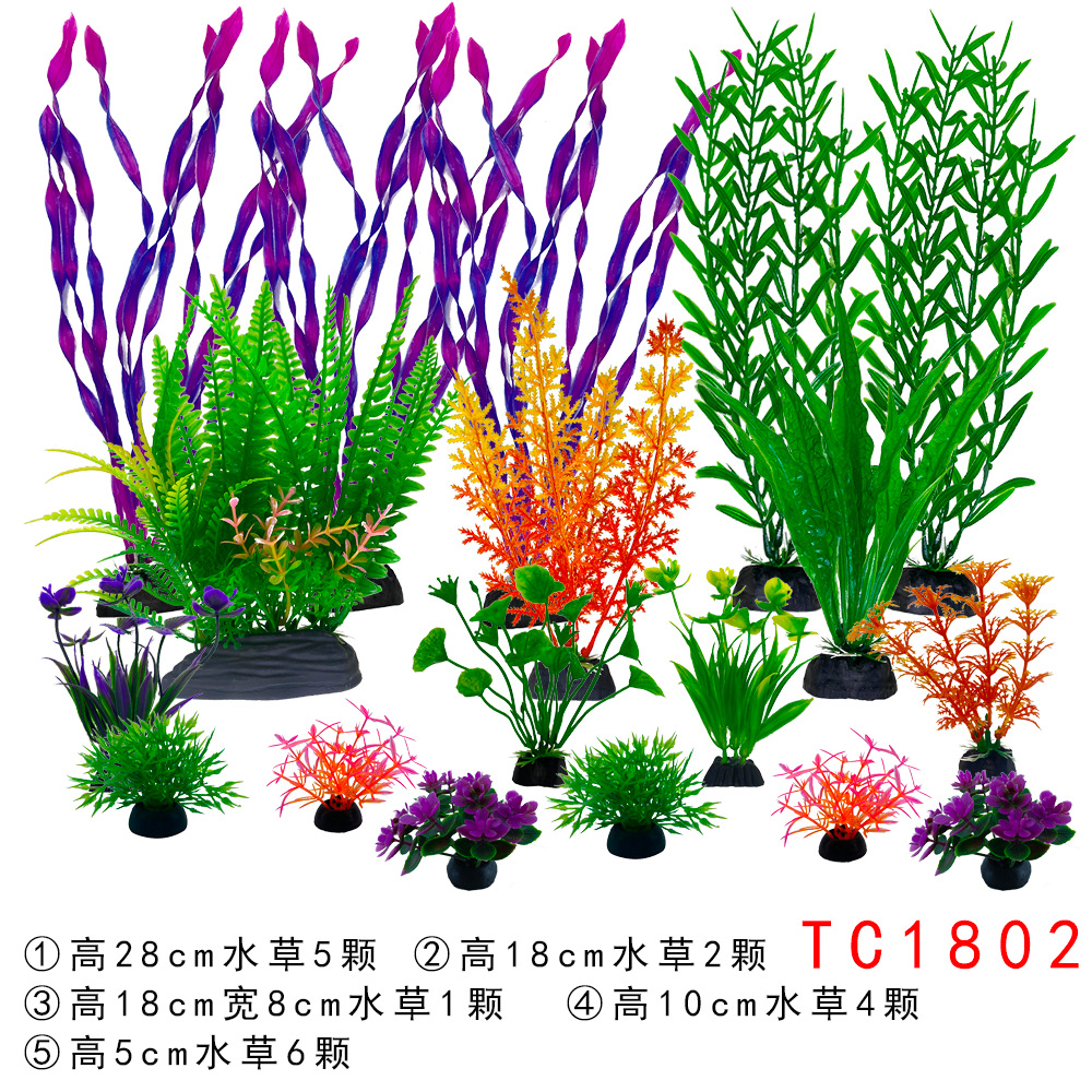 물고기 탱크 조경 인공 수생 식물 장식 세트 수족관 플라스틱 가짜 해초 게으른 패키지 도매스토어 가기