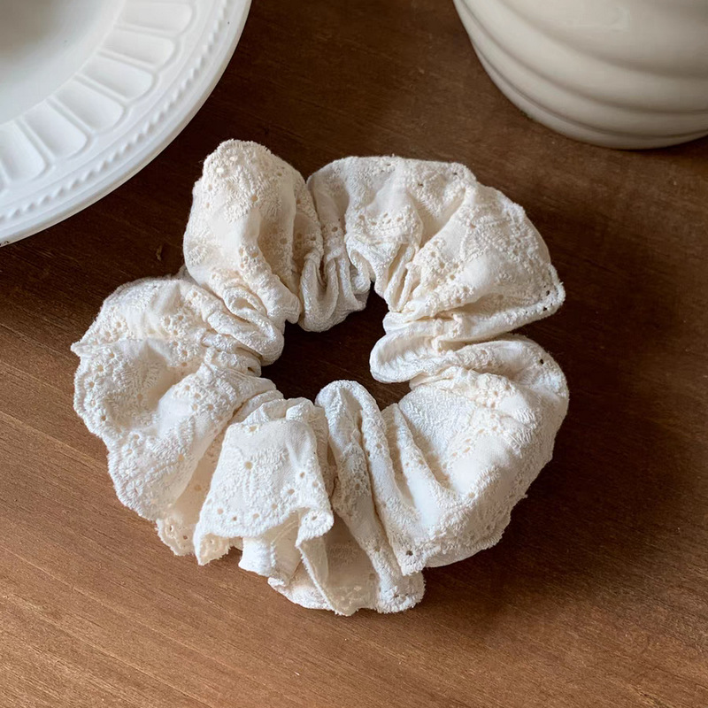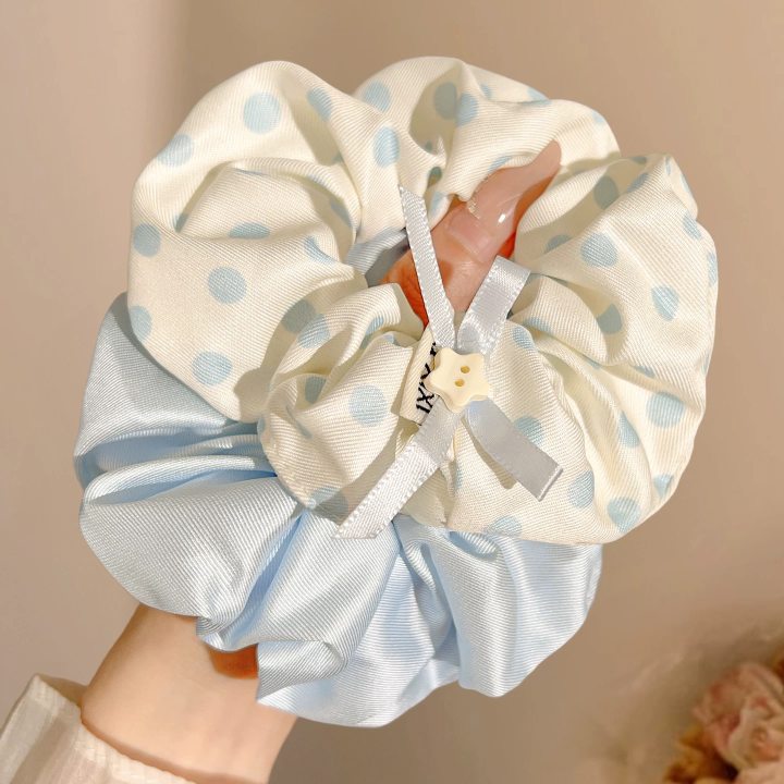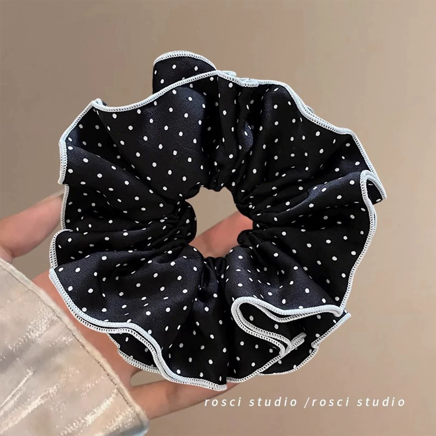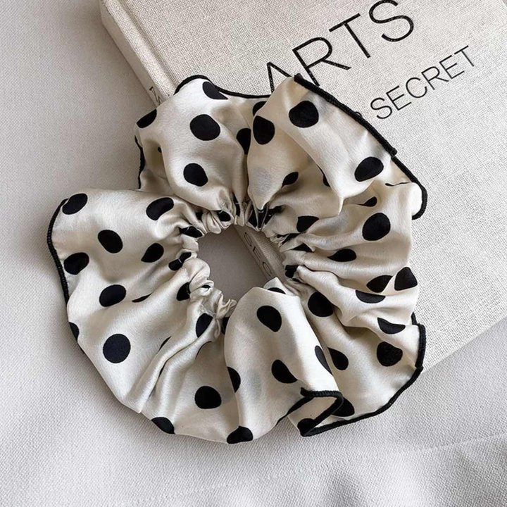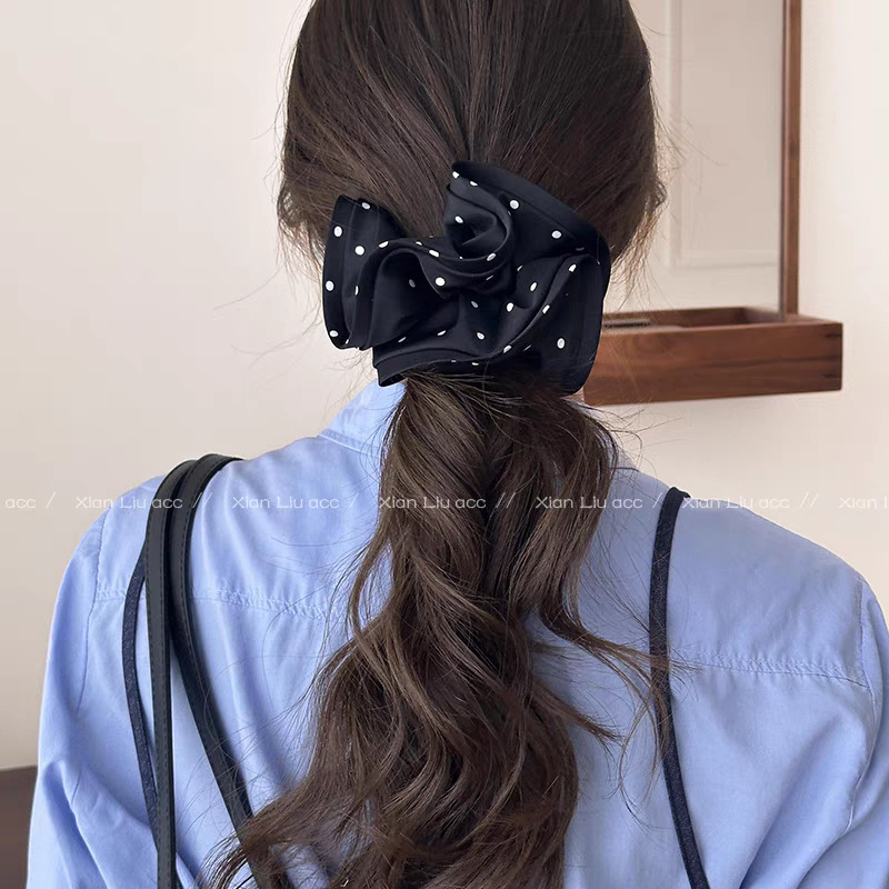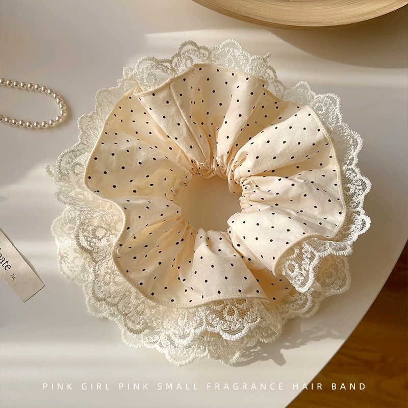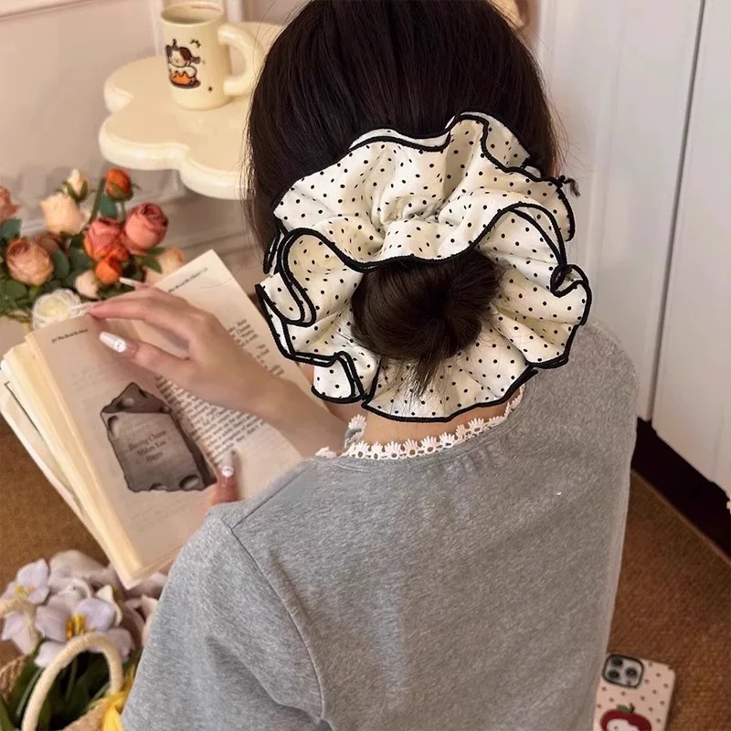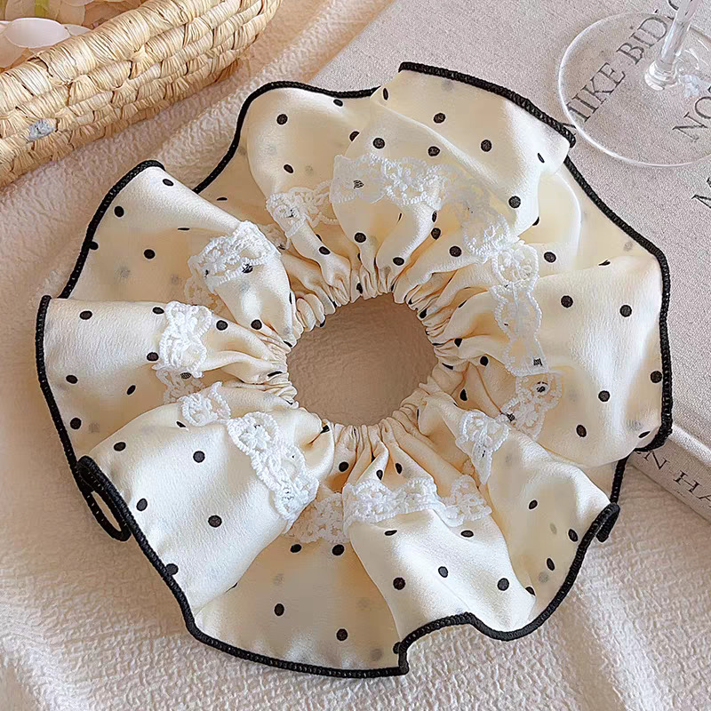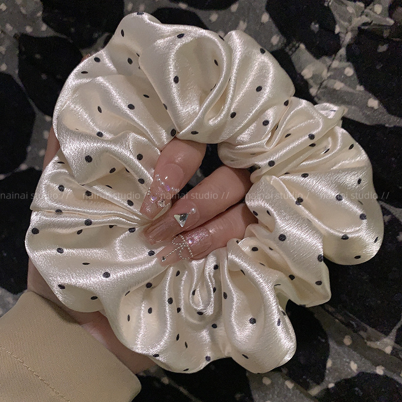 • 38#크림 화이트 폴카 도트 대장 머리끈