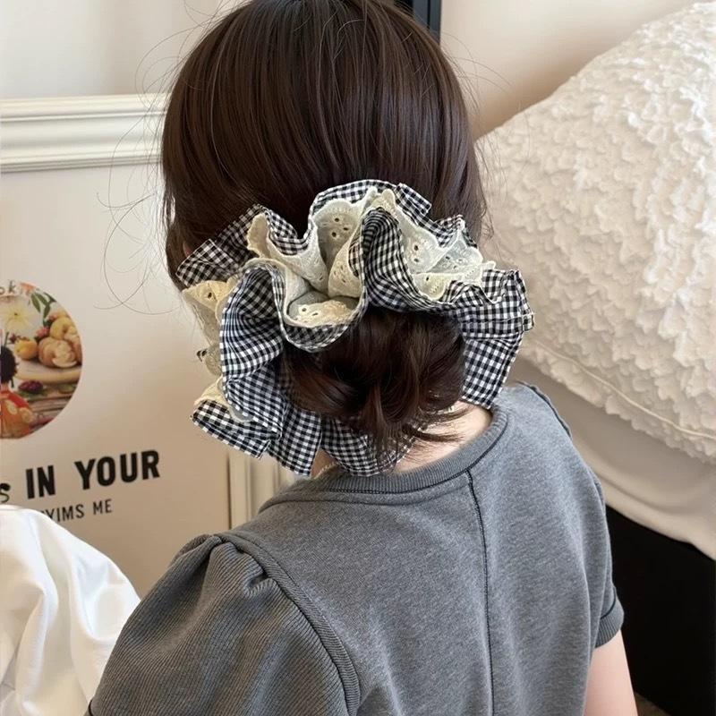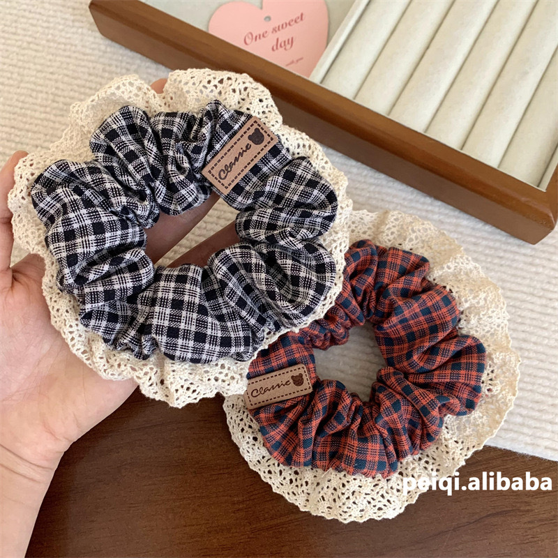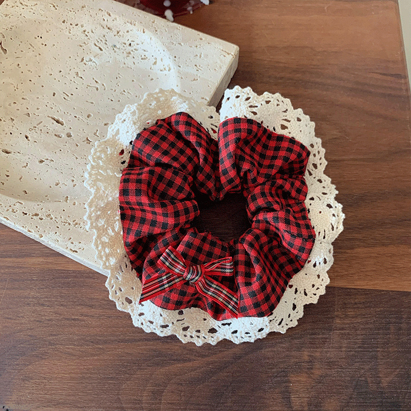 • 33#빨간색과 검은색 격자 무늬 레이스 머리끈
