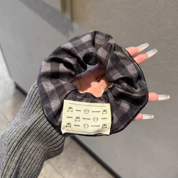 • 59#회색 녹색 대형 격자 무늬 머리끈 약 12cm