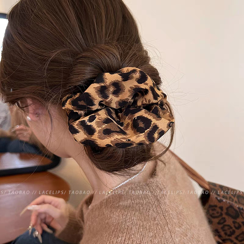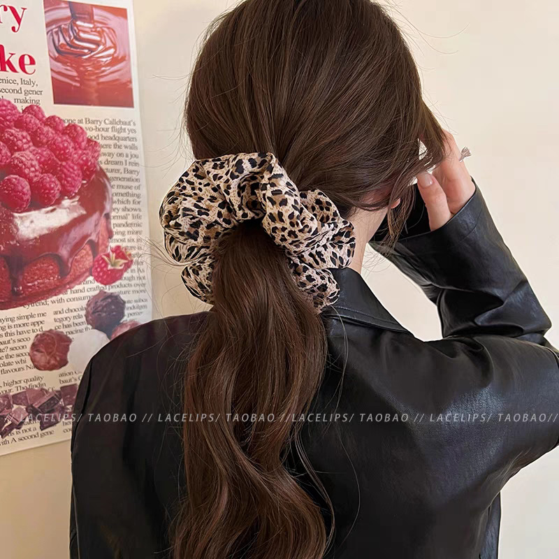 • 58#더블 레이어 브라운 레오파드 프린트 약 14cm 머리끈