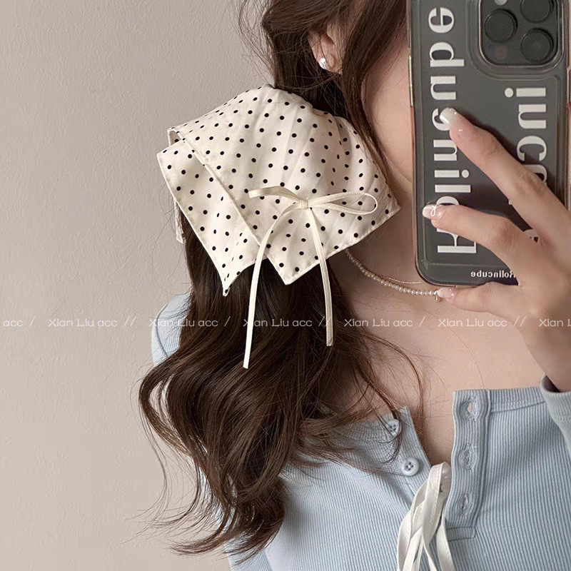 • 21#베이지 폴카 도트 스퀘어 스카프 리본 약 26cm