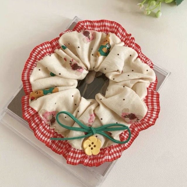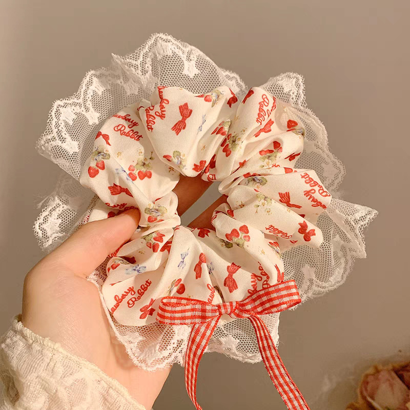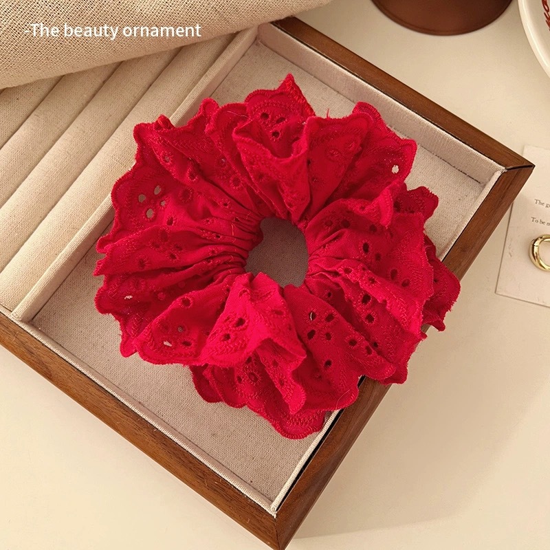 • 28 # 레드 더블 레이스 머리끈 약 12cm