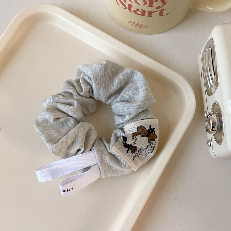 • 61#블루 커피 체크 무늬 곰 로고 약 10cm 머리끈