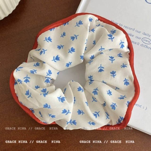 • 49#파란색 꽃무늬 빨간색 가장자리 머리끈