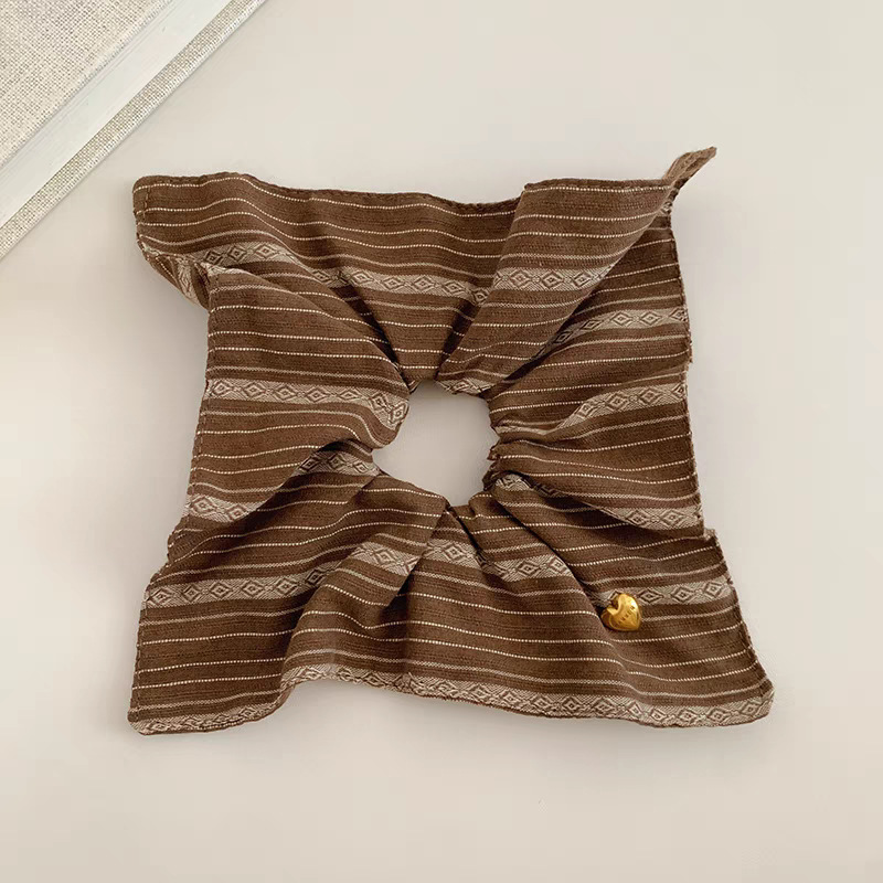 • 18#브라운 다이아몬드 스트라이프 골드 러브 스퀘어 스카프 약 22cm