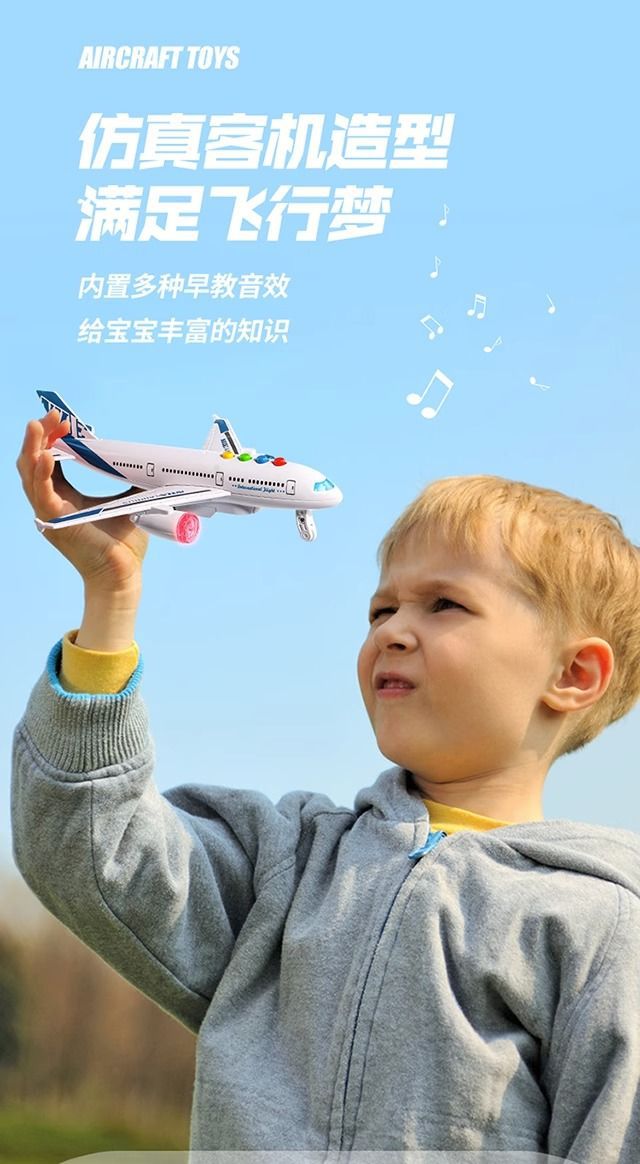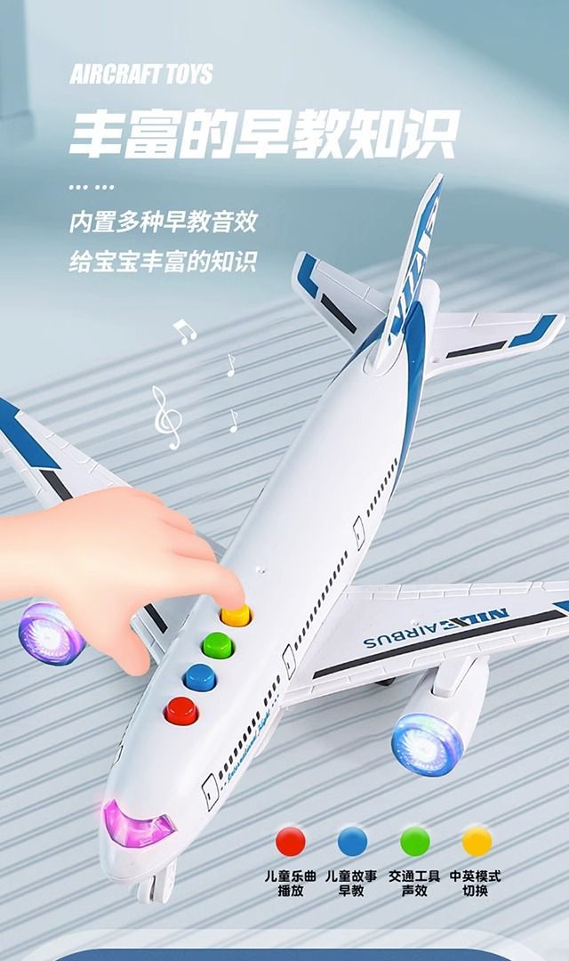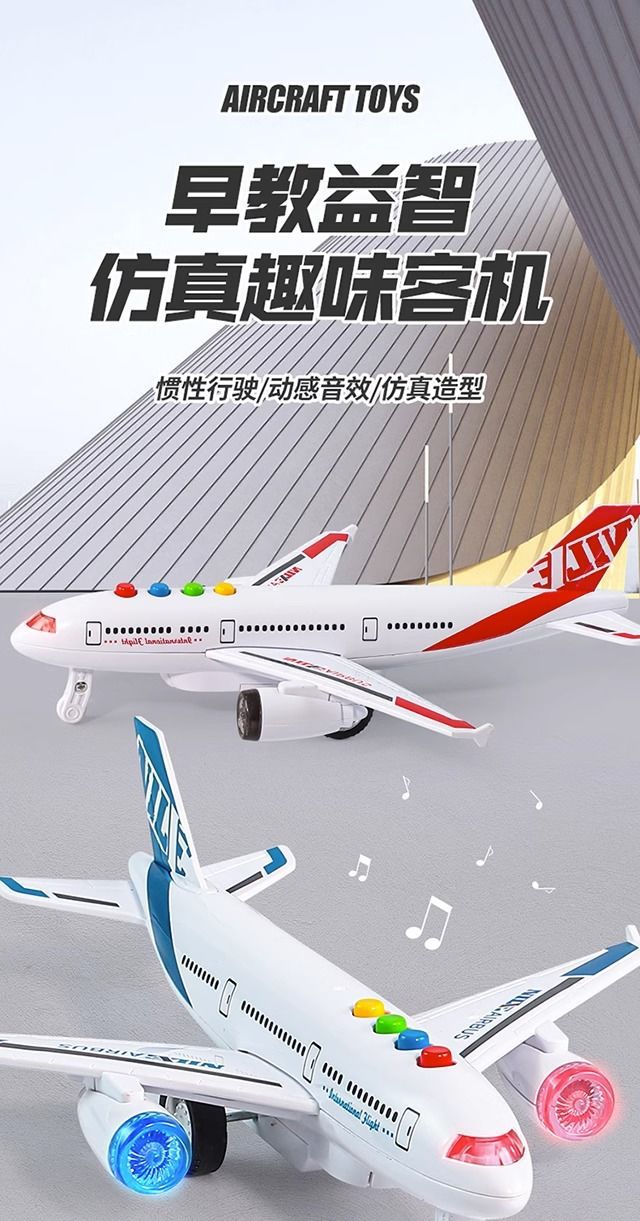 어린이 시뮬레이션 항공기 모델 아기 퍼즐 조기 교육 항공기 가벼운 음악 관성 장난감 소년 생일 선물스토어 가기