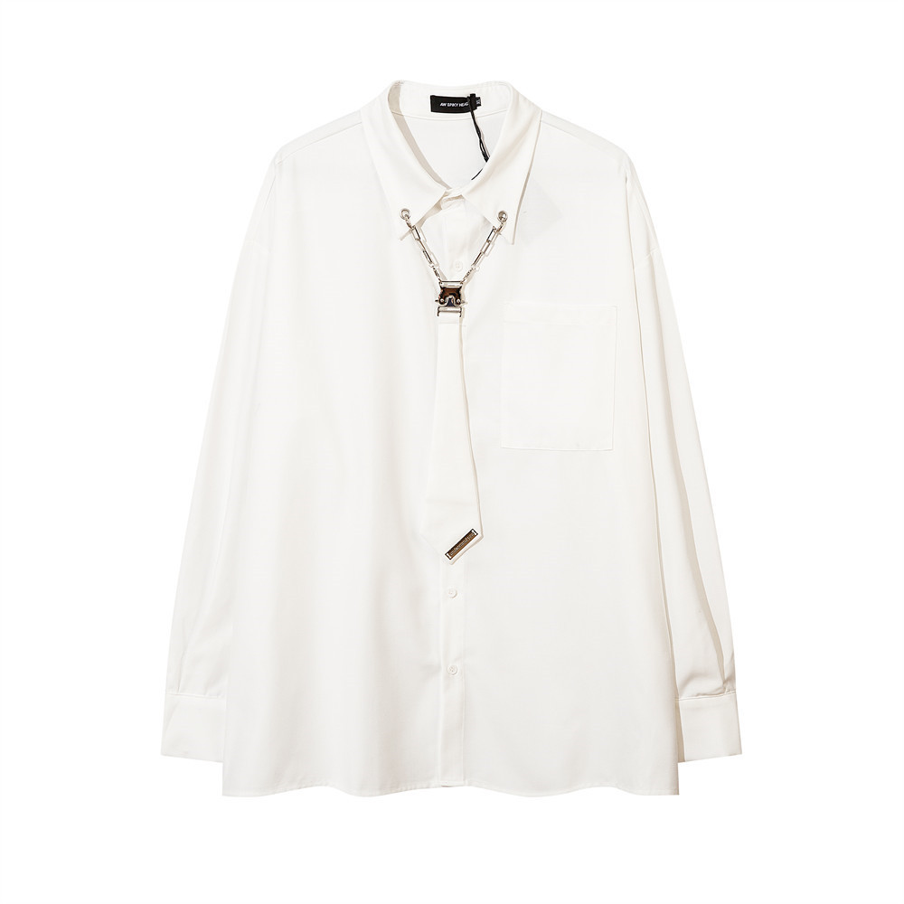 넥타이 장식용 긴팔 셔츠 가을 느슨한 대학 스타일 틈새 디자인 스트리트 패션 카디건 셔츠스토어 가기