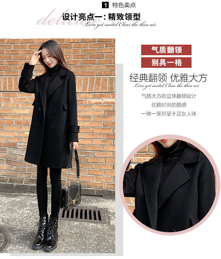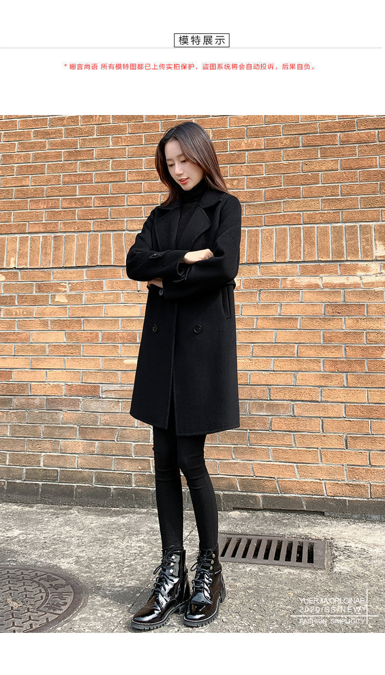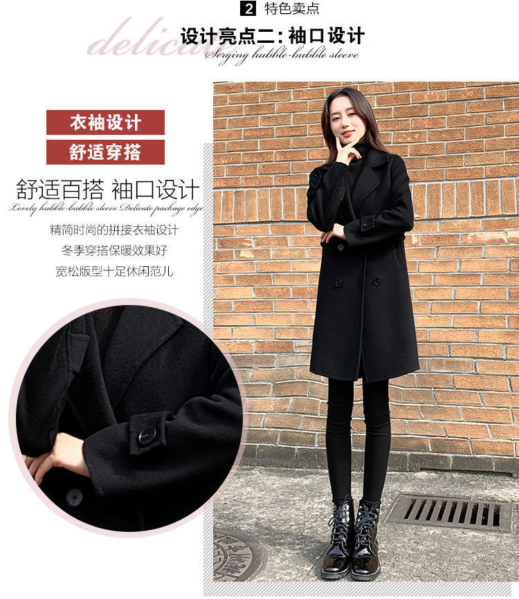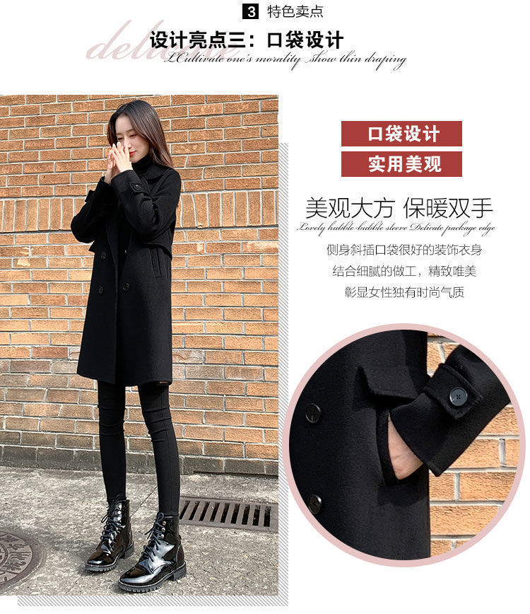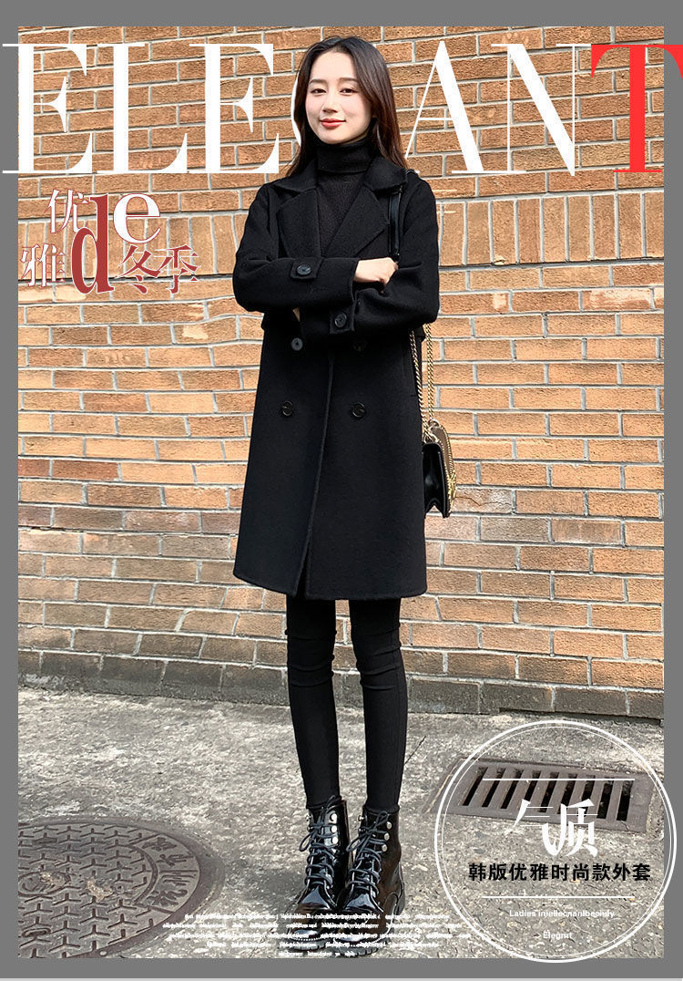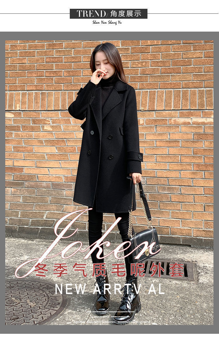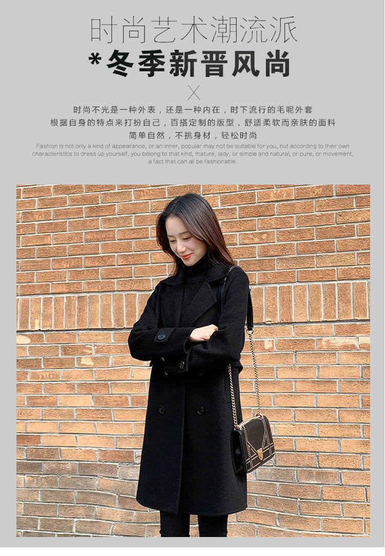 여성을위한 모직 외투 가을 겨울 2023 새로운 한국식 벨트 우아한 검은 슬리밍 중장 모직 외투스토어 가기