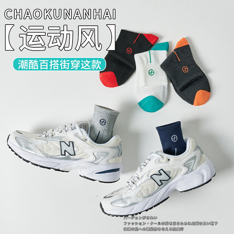 새로운 스포츠 통기성 면화 부드러운 탈취제 남성 가을 및 겨울 레저 스포츠 중간 배럴 양말 조수 Zhuji 양말 공급스토어 가기