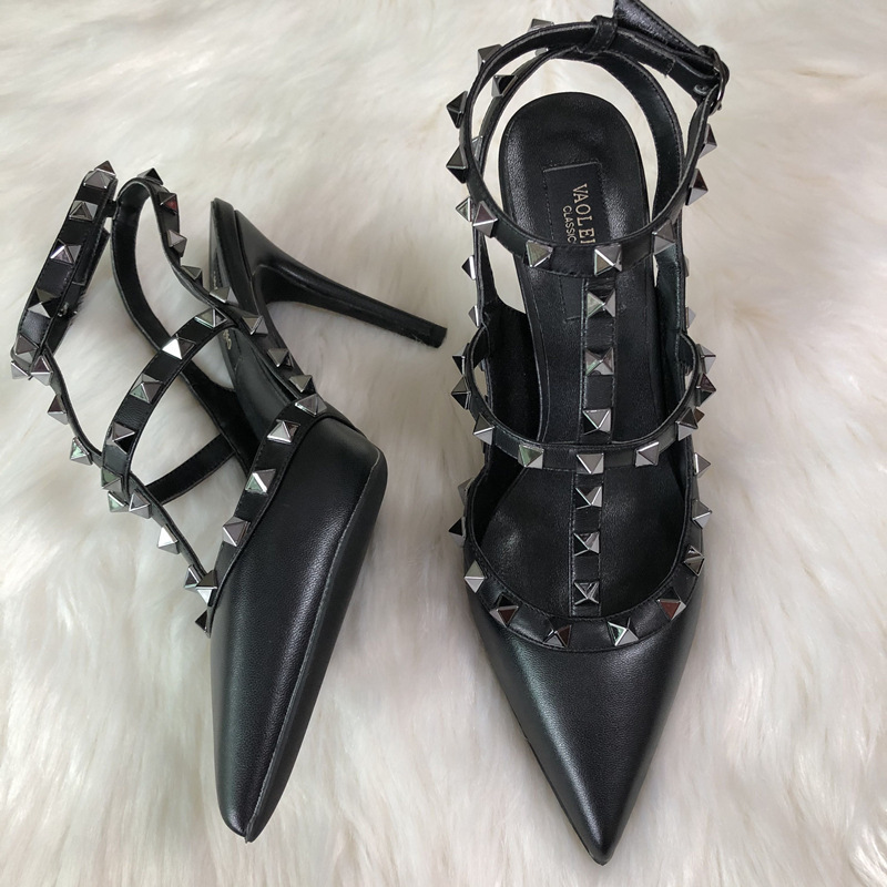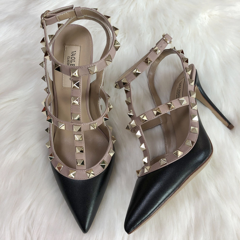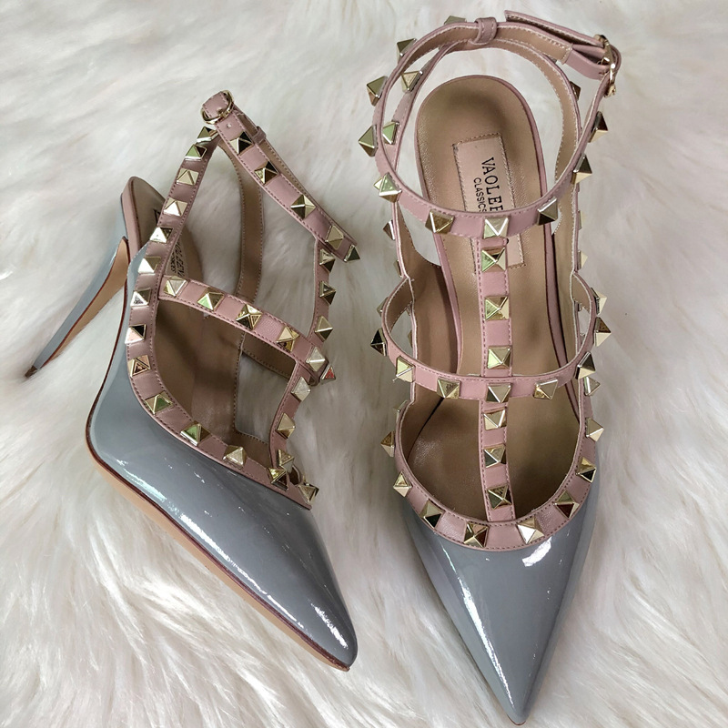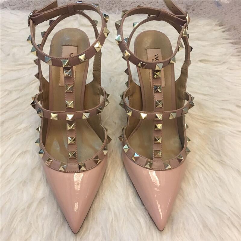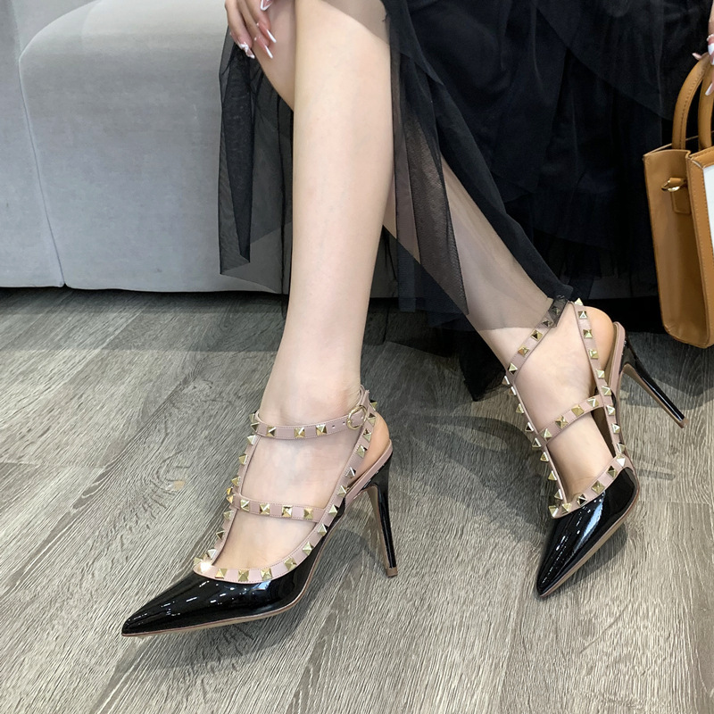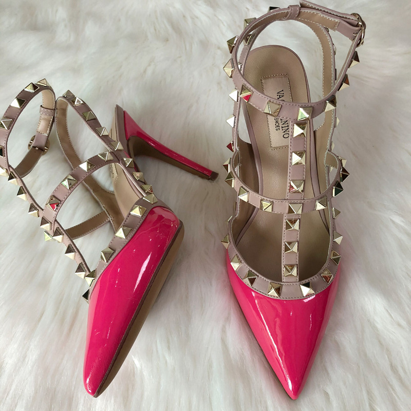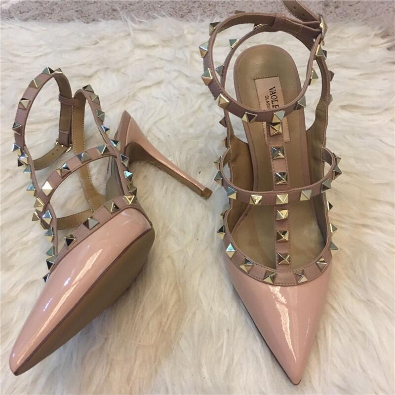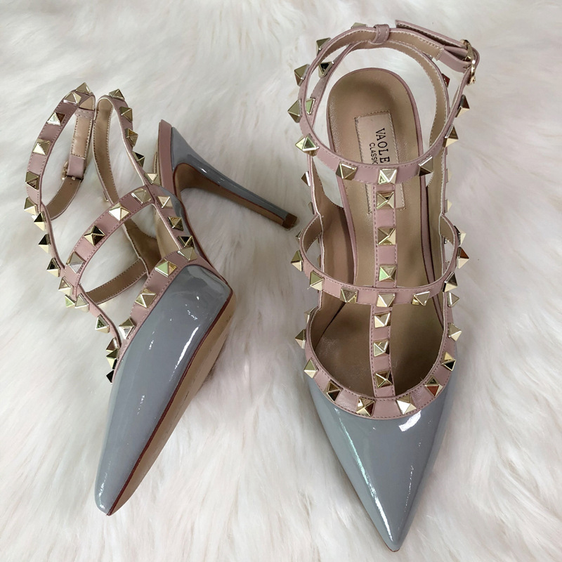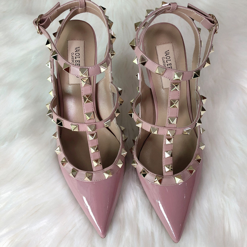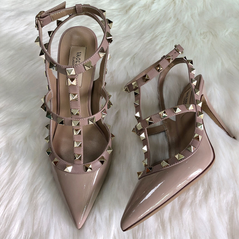 발렌티노 하이힐 여성 리벳, 2 스트랩 3 스트랩 가죽 특허 가죽 스틸레토 힐 버들 여름 샌들 여성스토어 가기