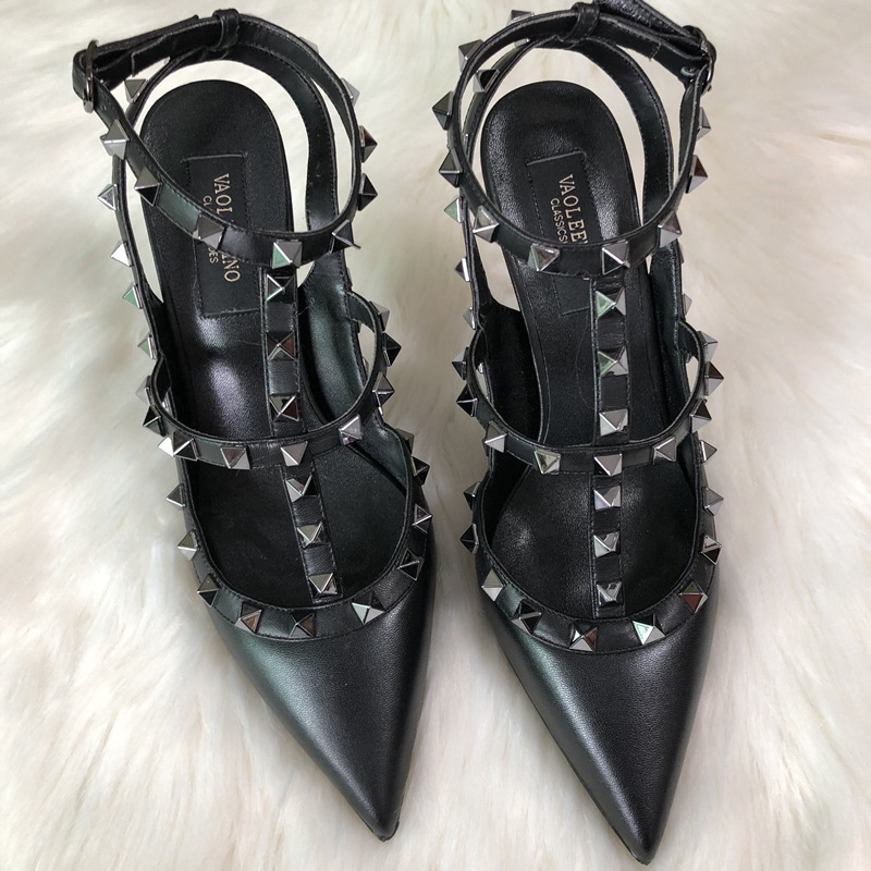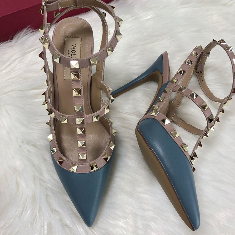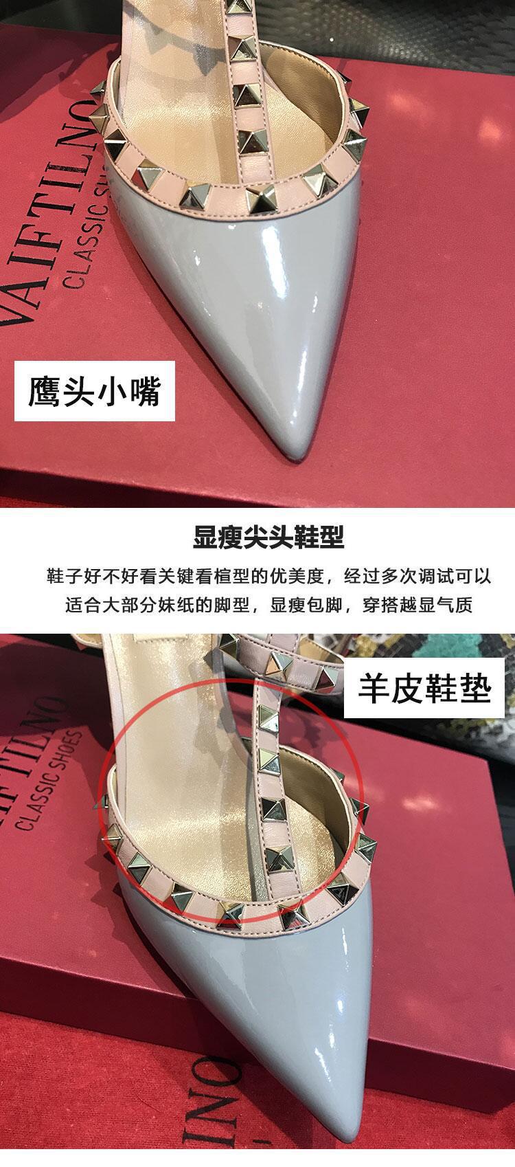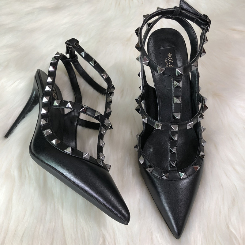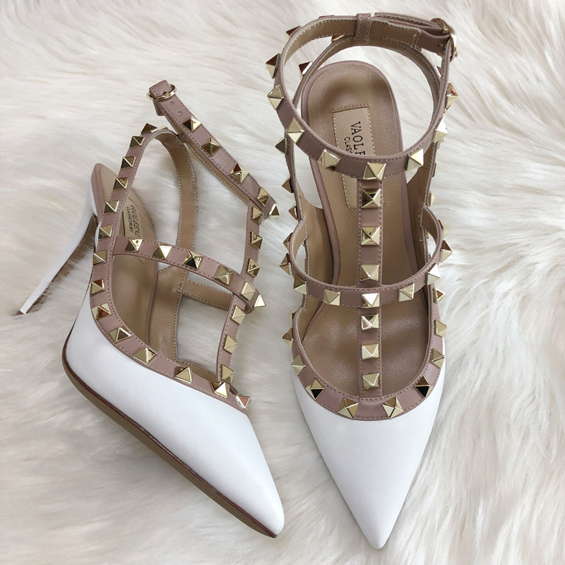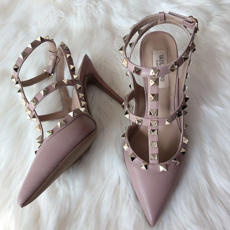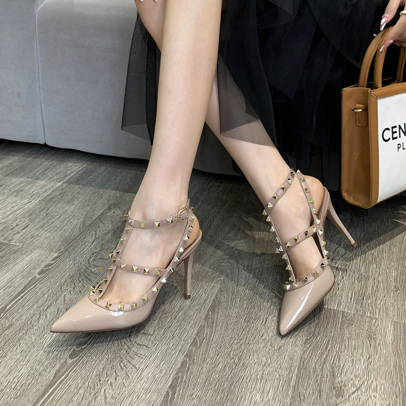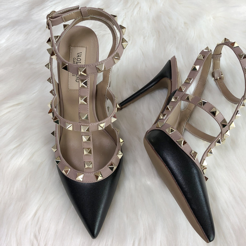 발렌티노 하이힐 여성 리벳, 2 스트랩 3 스트랩 가죽 특허 가죽 스틸레토 힐 버들 여름 샌들 여성스토어 가기