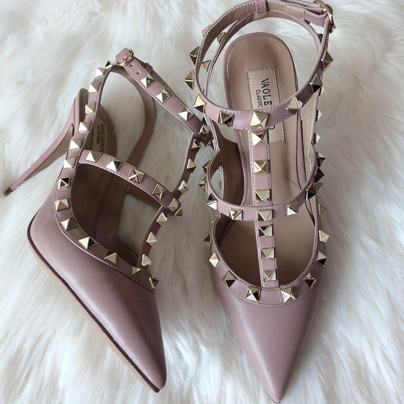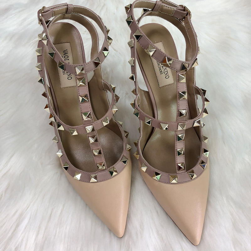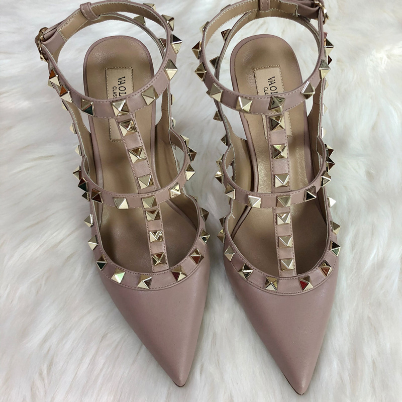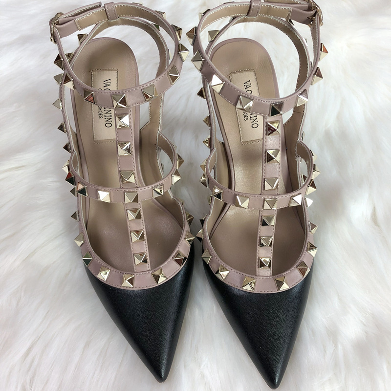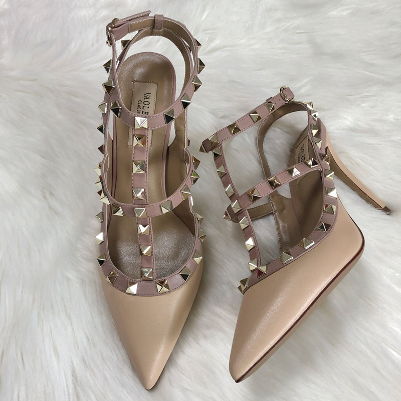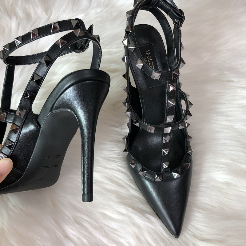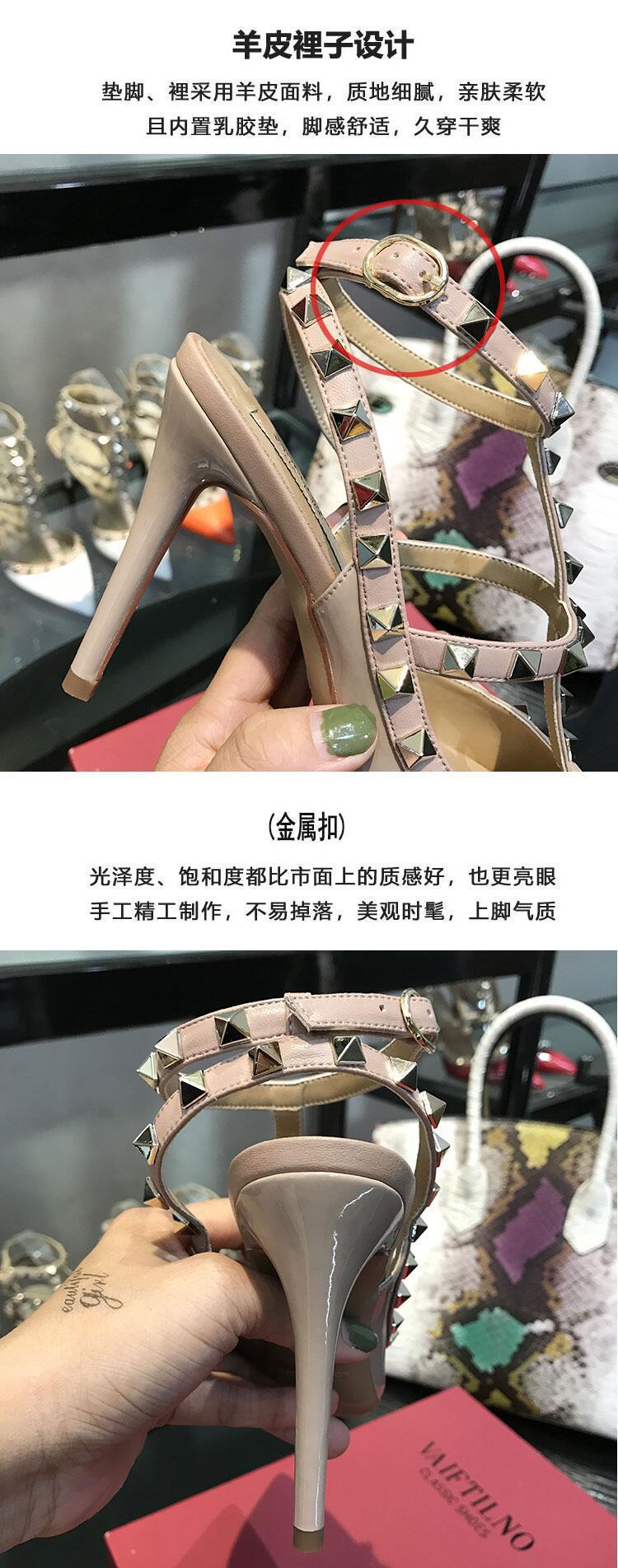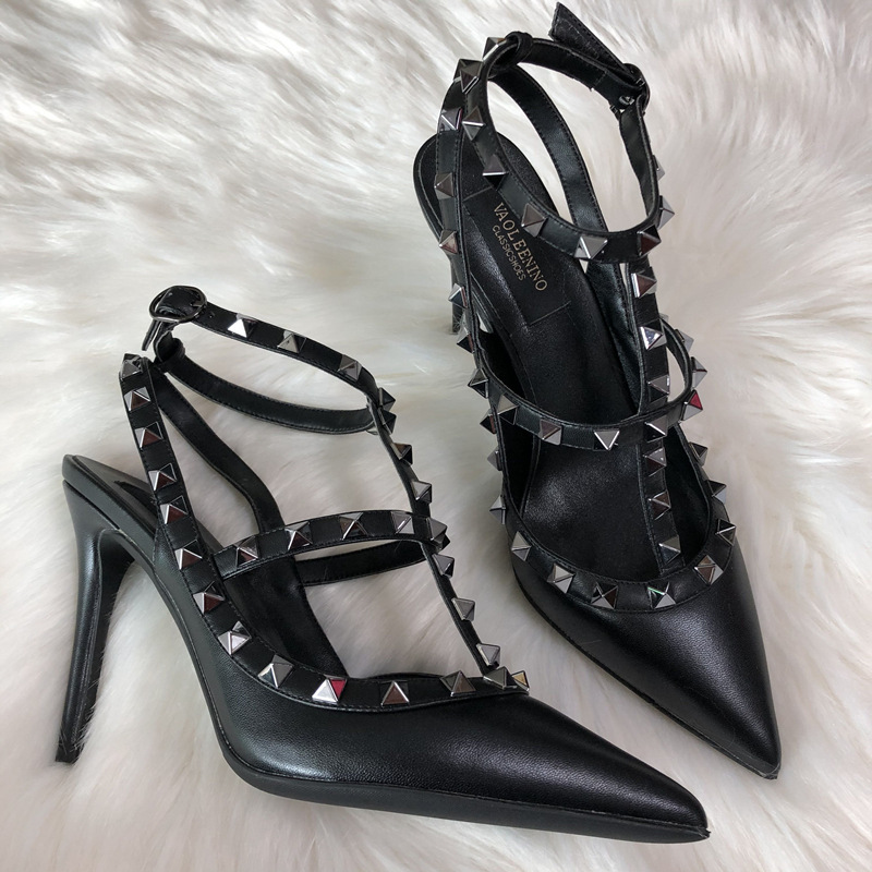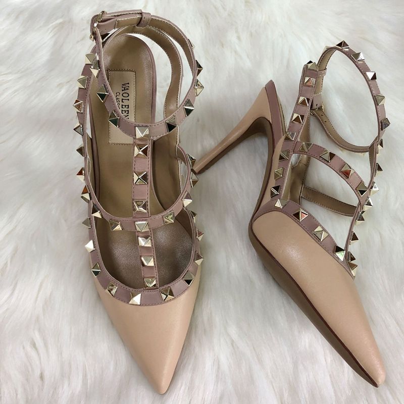 발렌티노 하이힐 여성 리벳, 2 스트랩 3 스트랩 가죽 특허 가죽 스틸레토 힐 버들 여름 샌들 여성스토어 가기