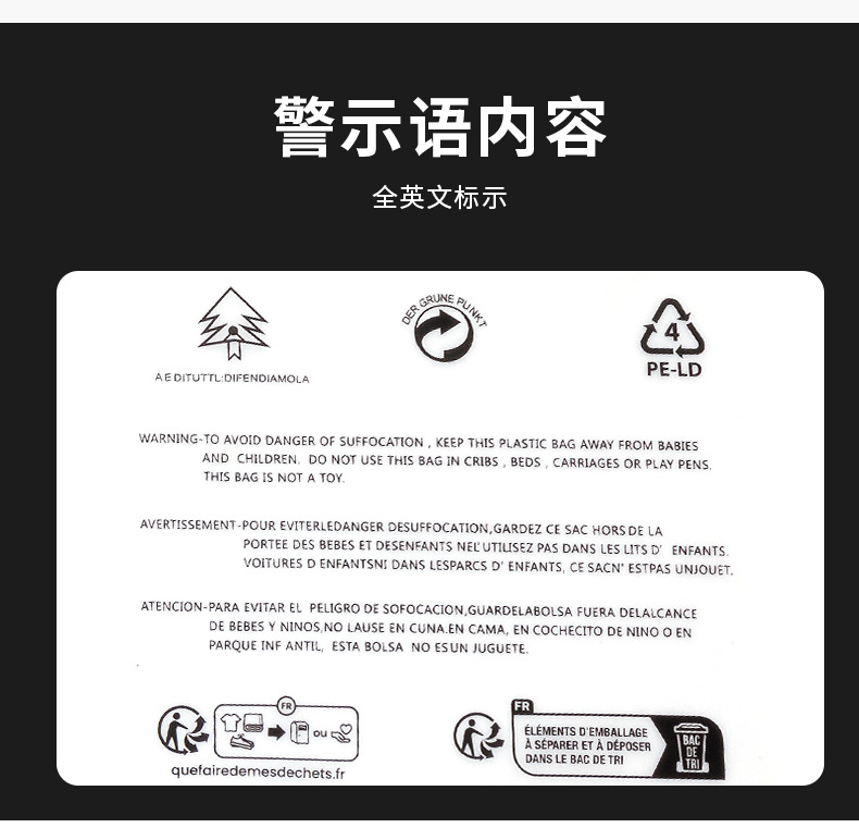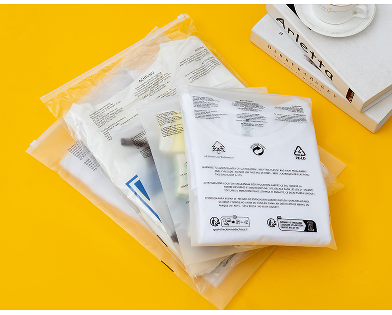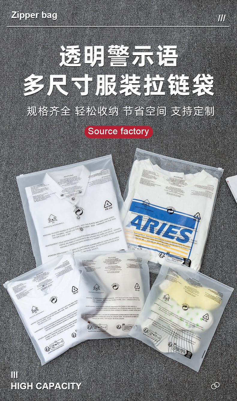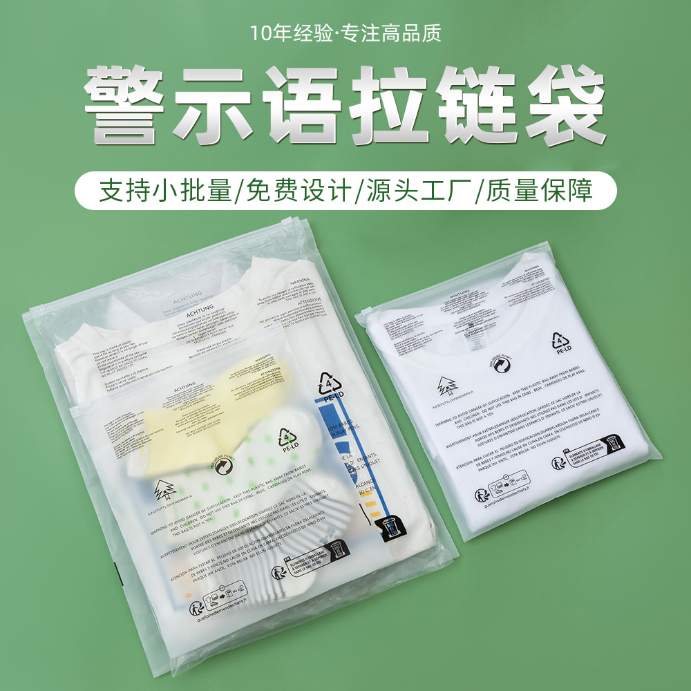 PE 젖빛 투명 경고 지퍼 가방 두꺼운 옷 포장 자체 밀봉 가방 유니버설 밀봉 포장 가방 도매